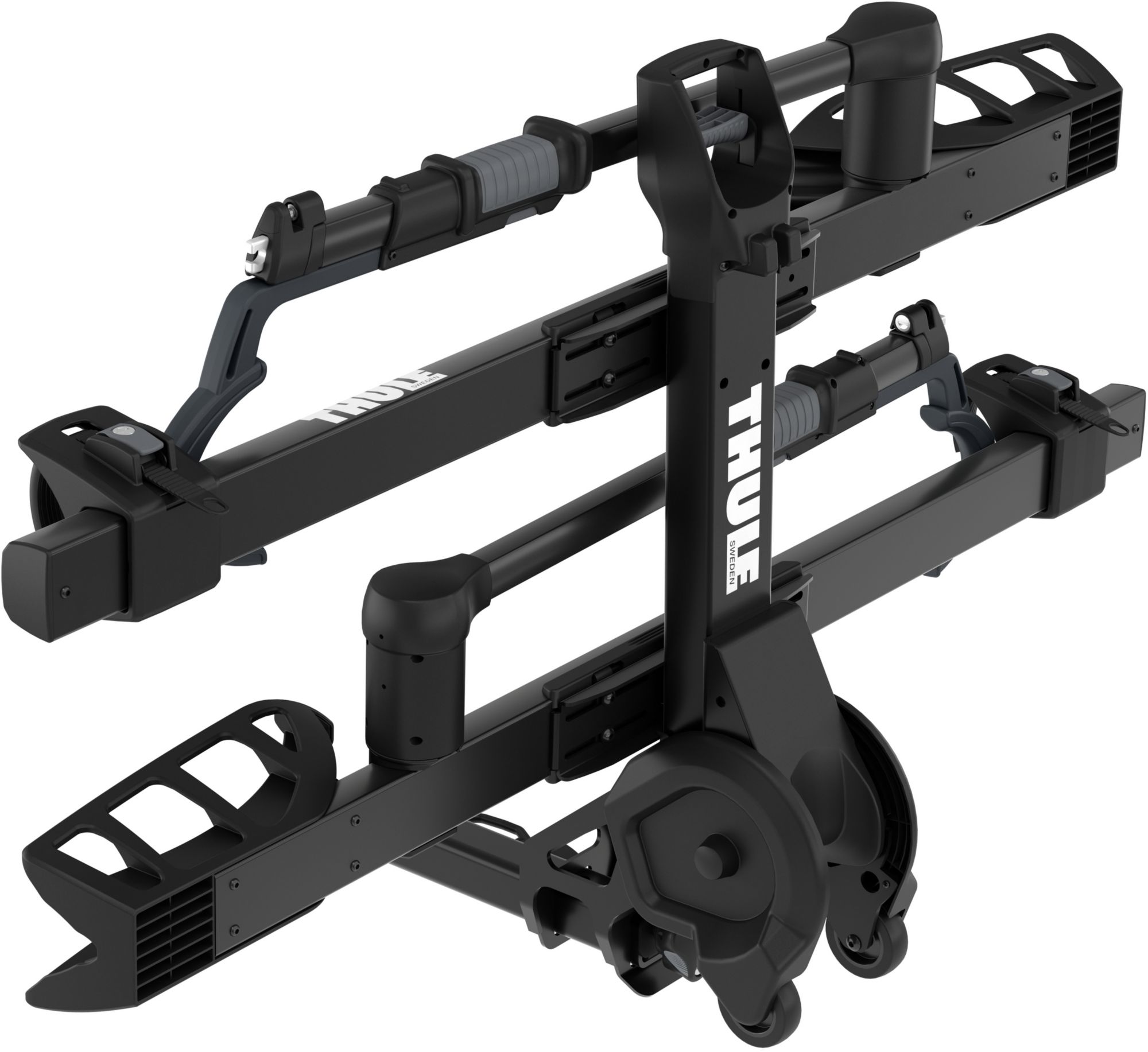 Choose a bike rack with a heavy-gauge, powder-coated steel construction. Rubber and foam padding safeguard against scratches and scuffs to both your bike and your vehicle. Anti-sway cradles are a must-have for transporting multiple bikes. If you're carrying two or more bikes, it's often wise to secure the wheels with a cord or strap to prevent bumps. For more efficient storage, choose a rack designed to fold away.