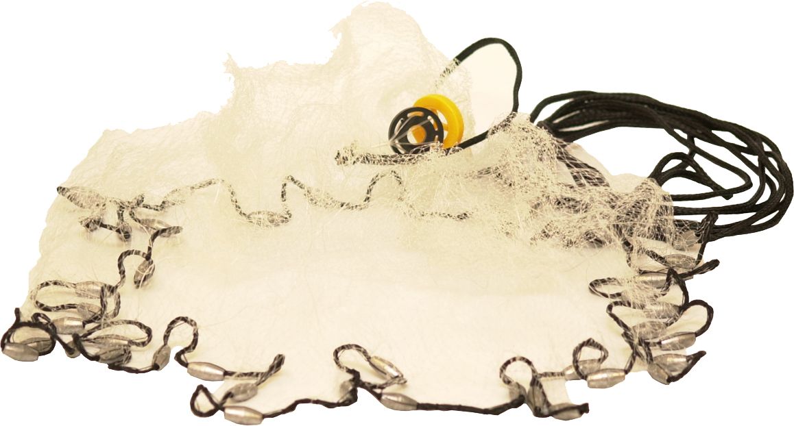 Designed to spread and sink quickly, thus giving bait fish no time for escape, cast nets are available in sizes ranging from 6' to 10' in diameter.