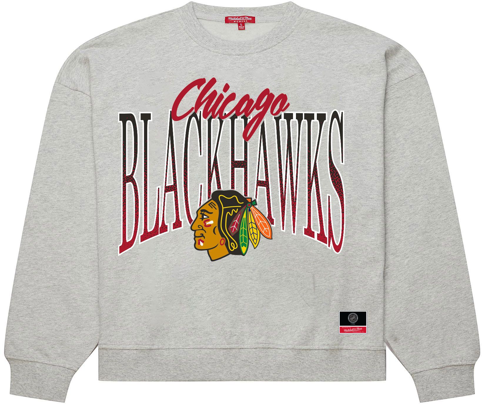 Mitchell & Ness Women's Chicago Blackhawks Grey Hockey Night Crewneck Sweatshirt