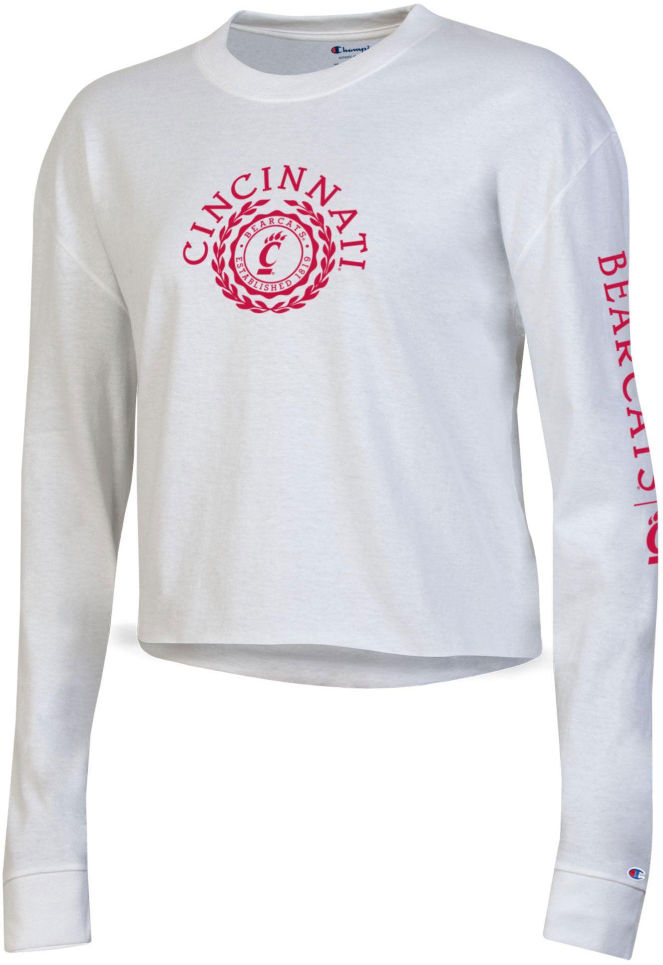 Champion Women's Cincinnati Bearcats White Boyfriend Cropped Long Sleeve T-Shirt