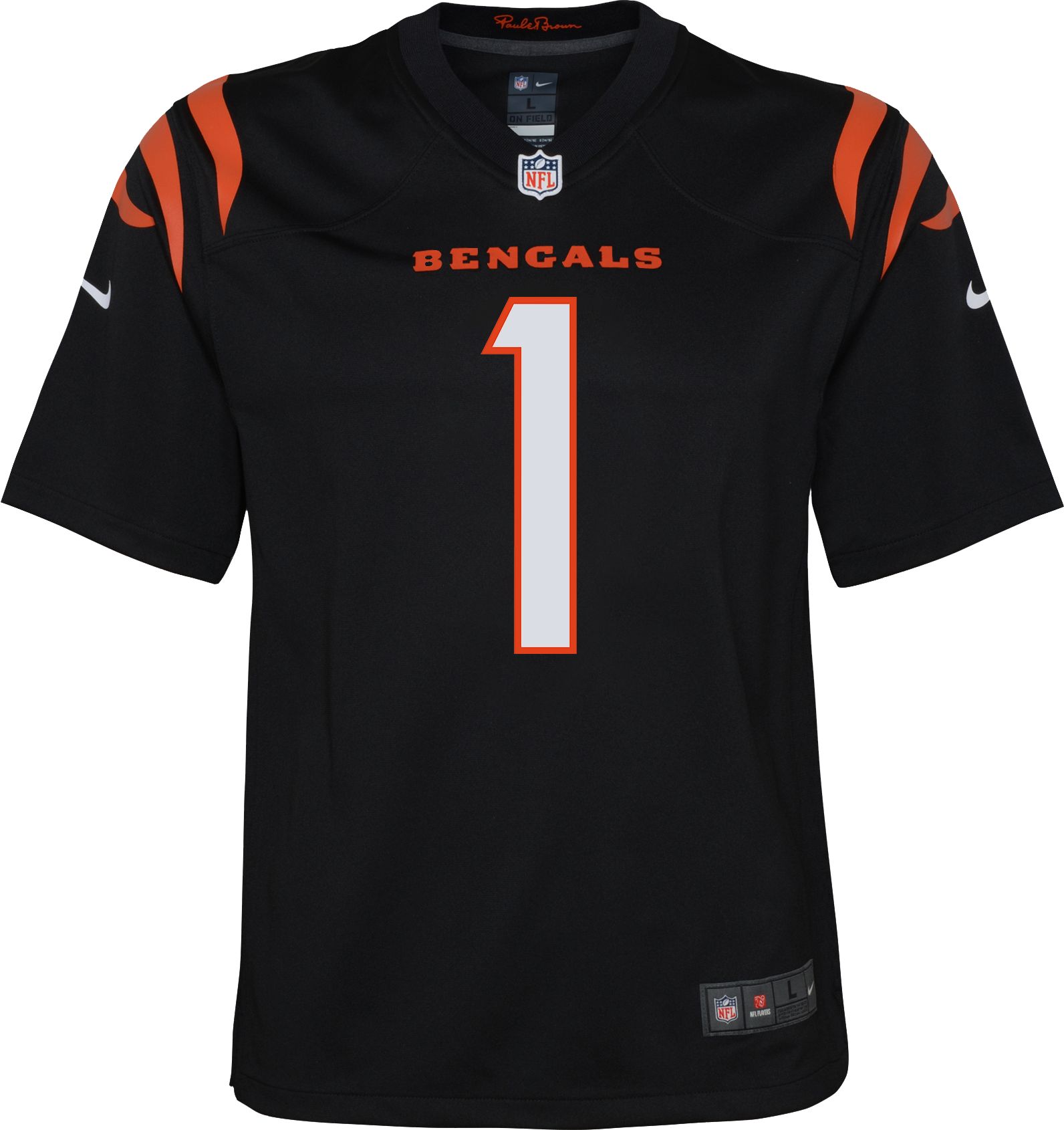 Show your stripes in an officially licensed Cincinnati Bengals jersey from DICK'S Sporting Goods. Whether you're looking for home black, road white or the Bengals Color Rush jersey, you'll find what you need at DICK'S. Plus, if you find a better price on a Bengals jersey from another qualifying retailer, we'll match it with our Best Price Guarantee.