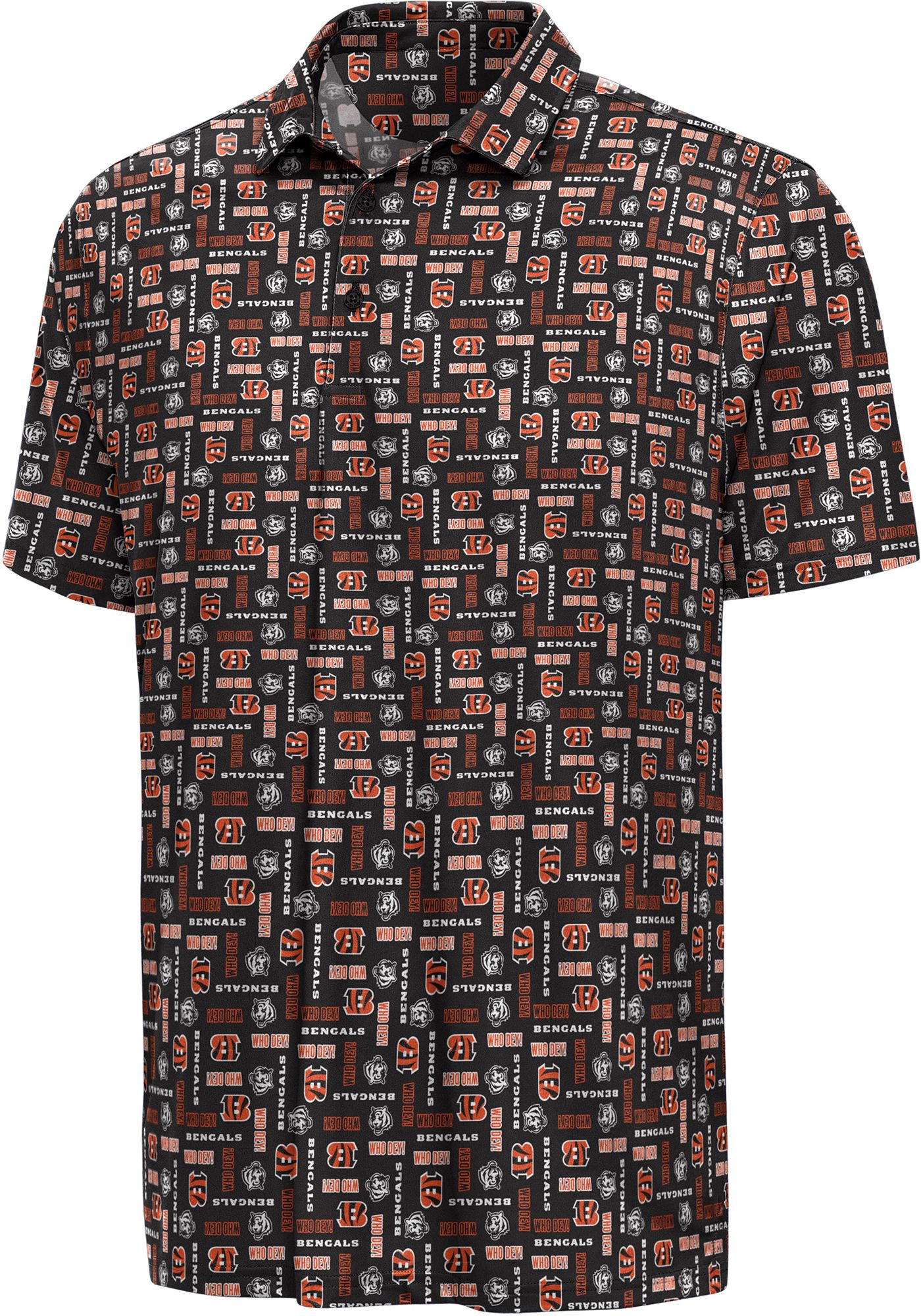 Antigua Men's Cincinnati Bengals Orange Field Ditsy Polo
