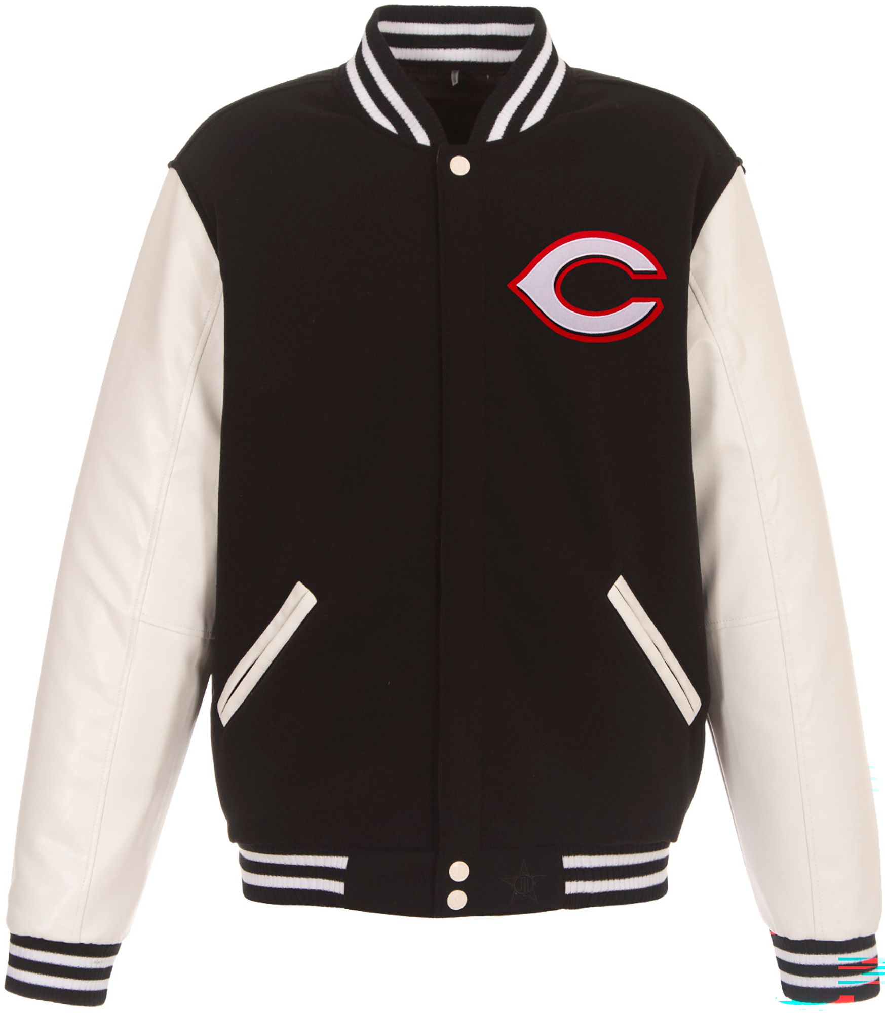 JH Design Men's Cincinnati Reds Black Reversible Varsity Jacket