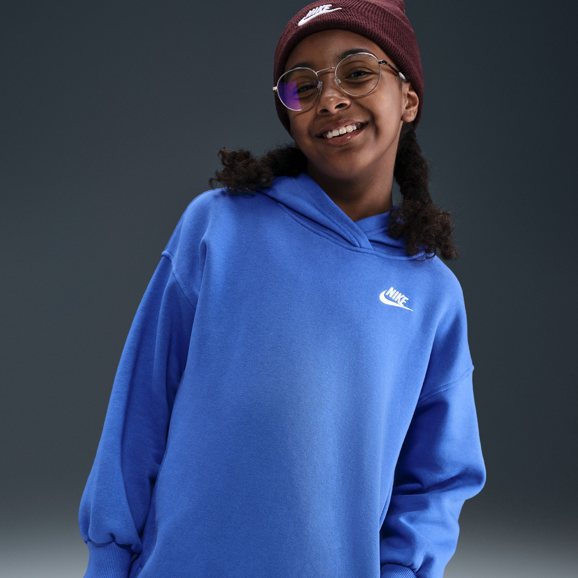 Nike Girls' Sportswear Club Fleece Oversized Printed Crewneck Sweatshirt