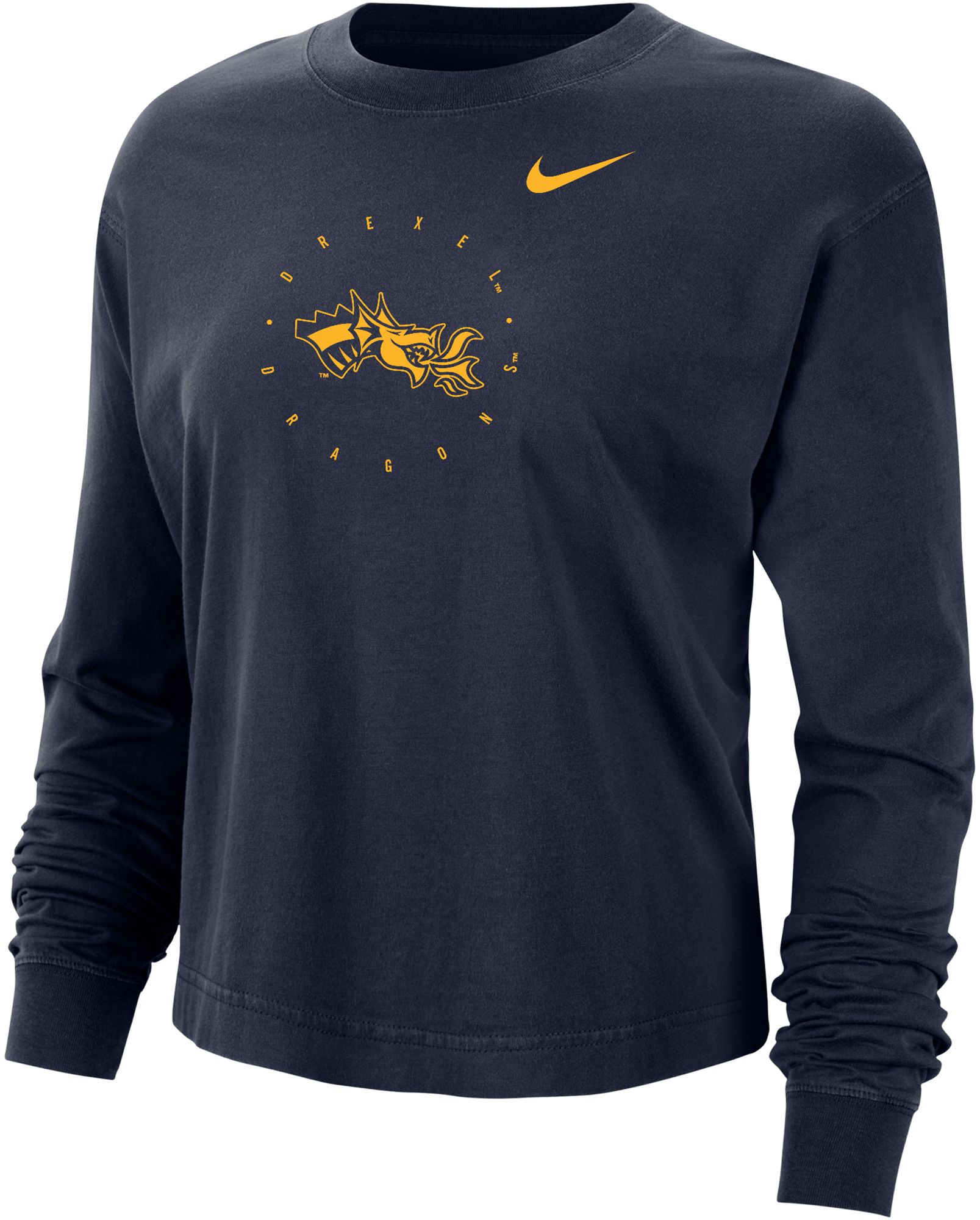 Nike Women's Drexel Dragons Blue Boxy Cropped Long Sleeve T-Shirt