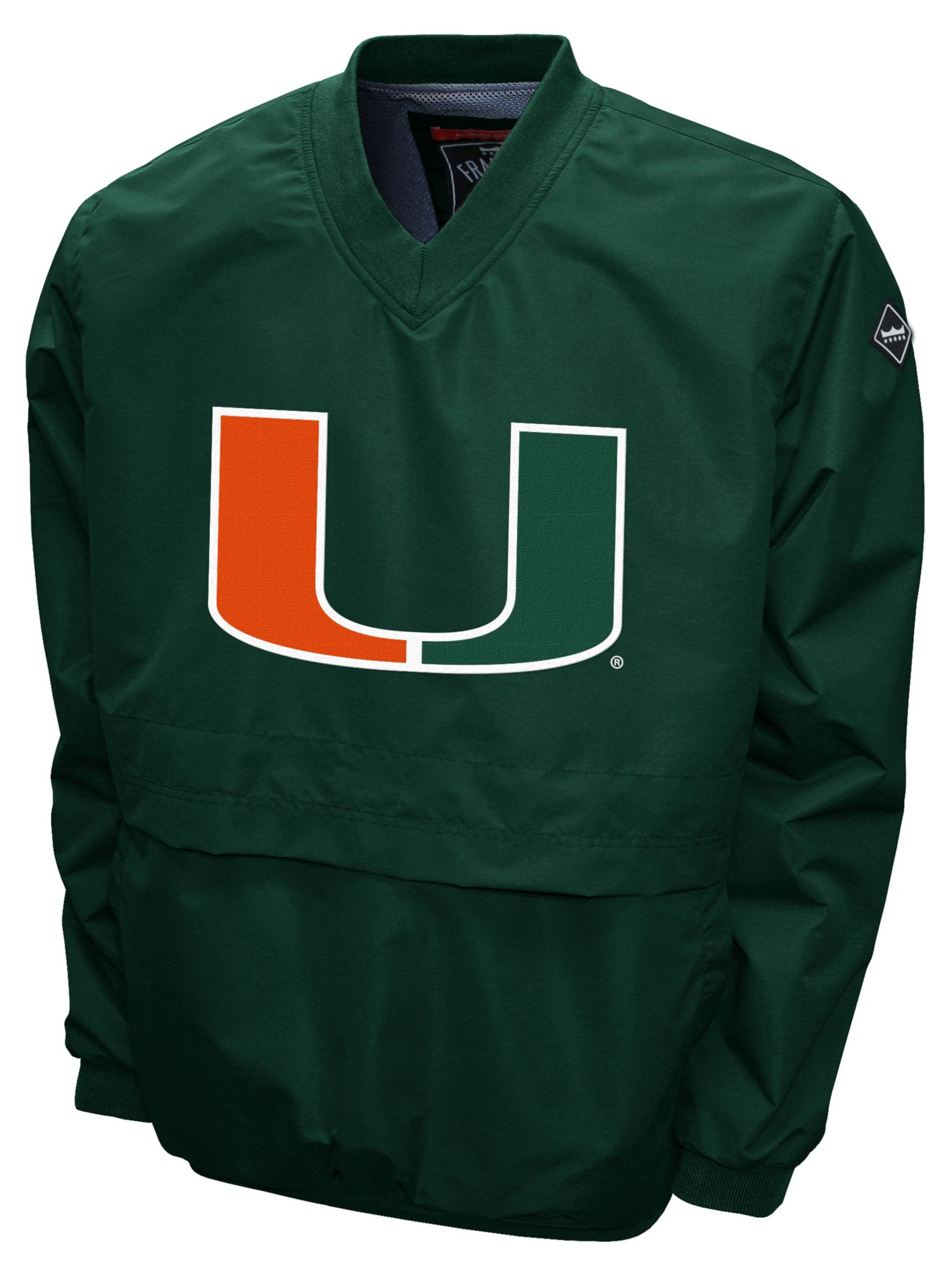 Franchise Club Men's Miami Hurricanes Green Big Logo Windshell Pullover