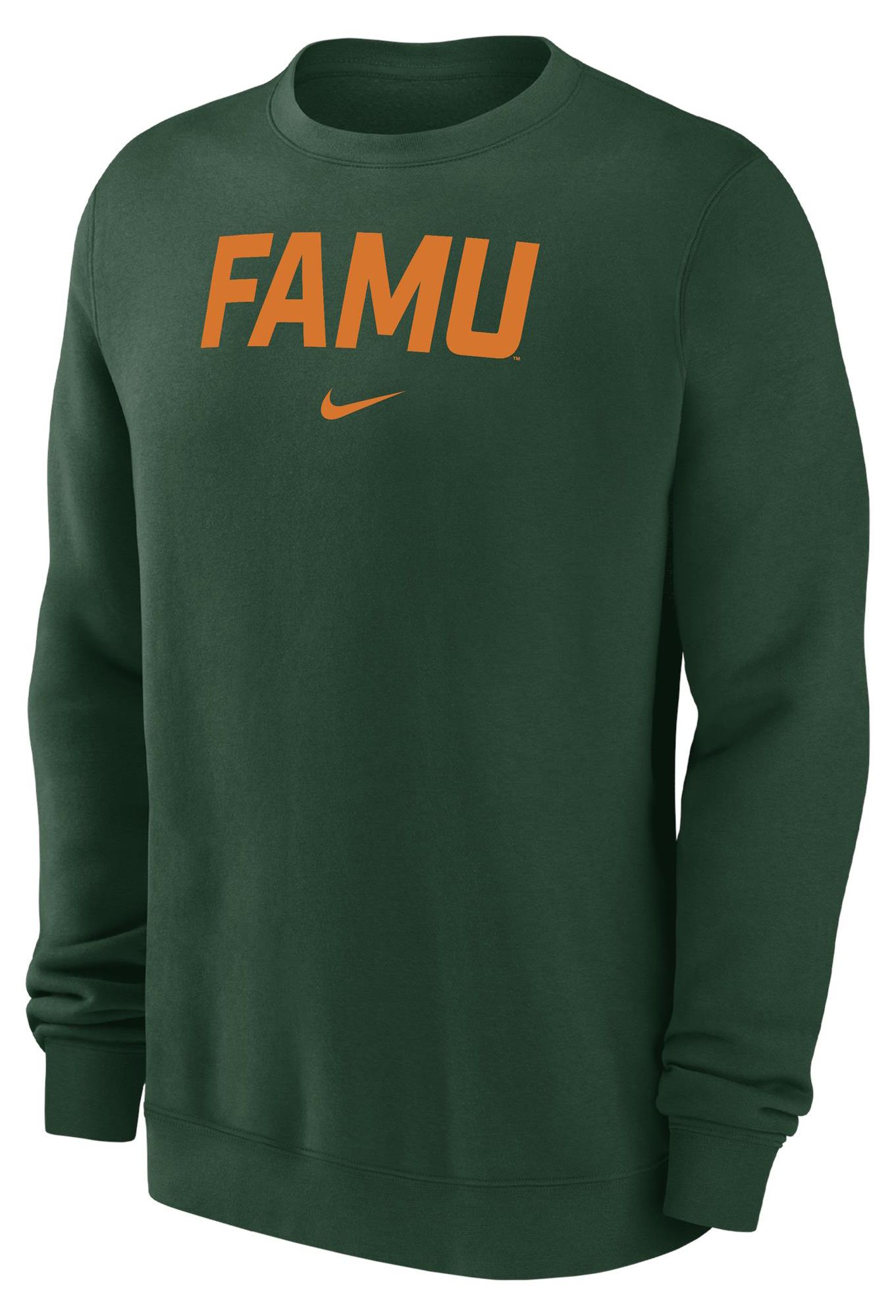 Nike Men's Florida A&M Rattlers Green Arch Club Fleece Crew Pullover Sweatshirt