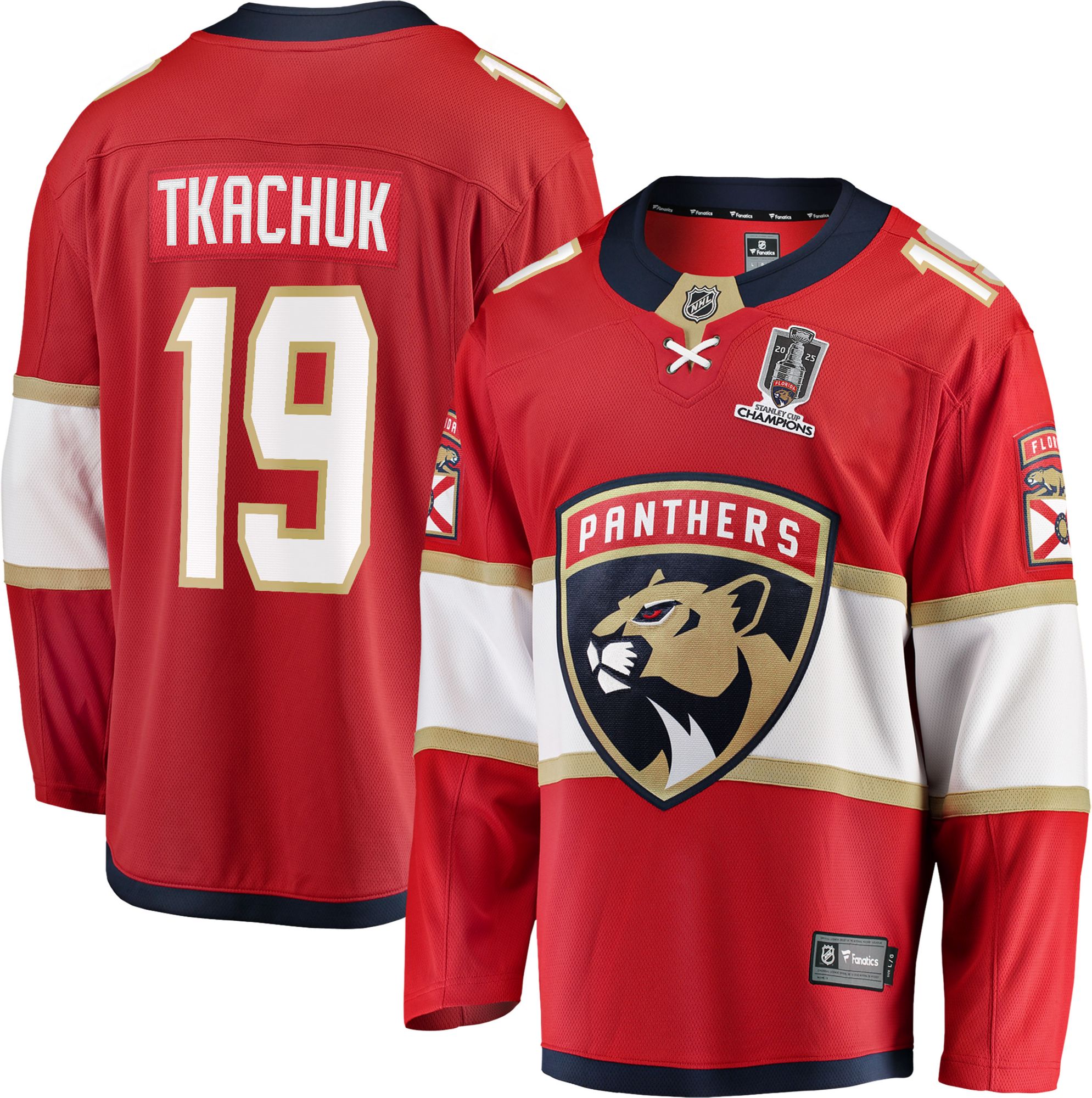 NHL Adult Florida Panthers Matthew Tkachuk #19 2025 Stanley Cup Champions Patch Jersey