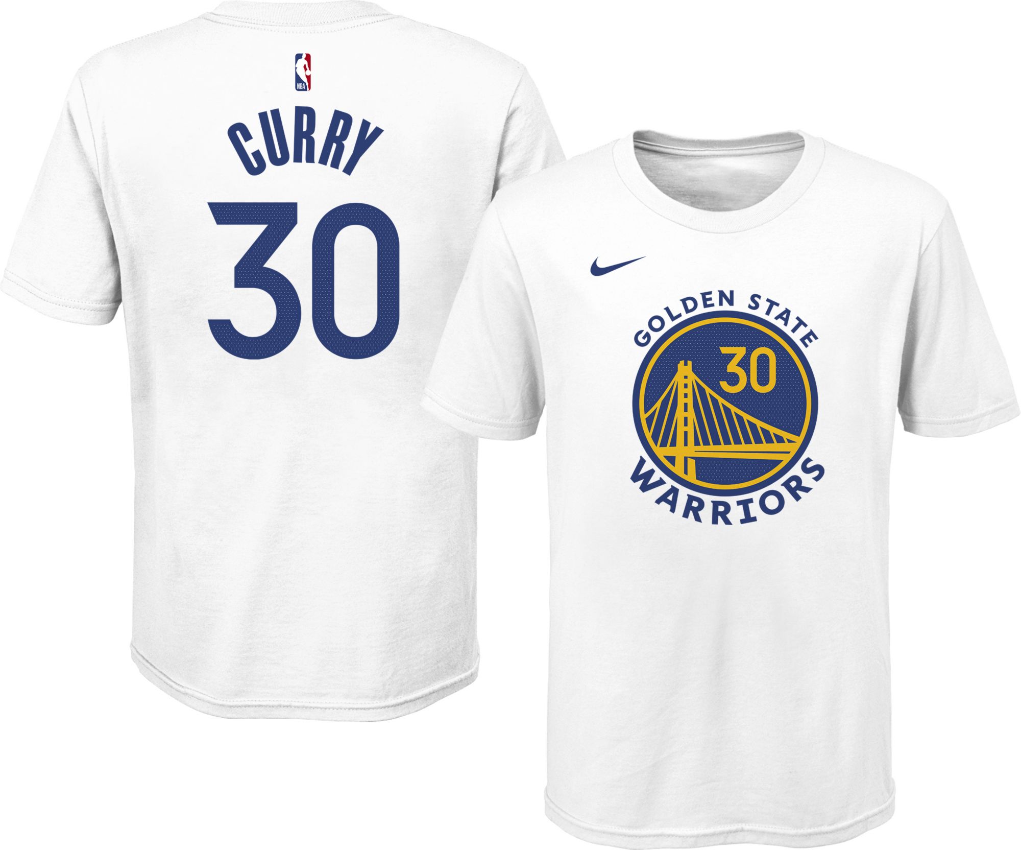 Nike Youth Golden State Warriors Steph Curry #30 Cotton White T-Shirt