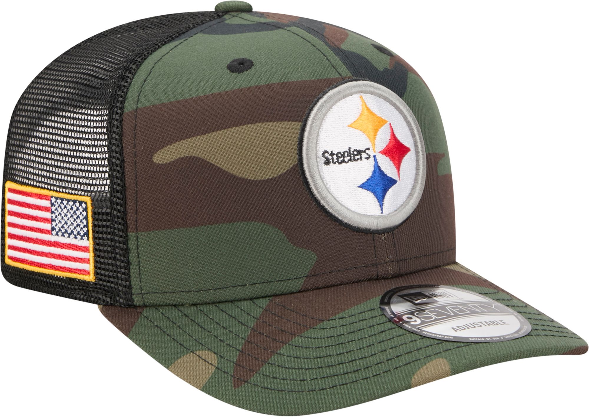 New Era Adult Pittsburgh Steelers Camo Salute To Service 2025 9Seventy Adjustable Trucker Hat