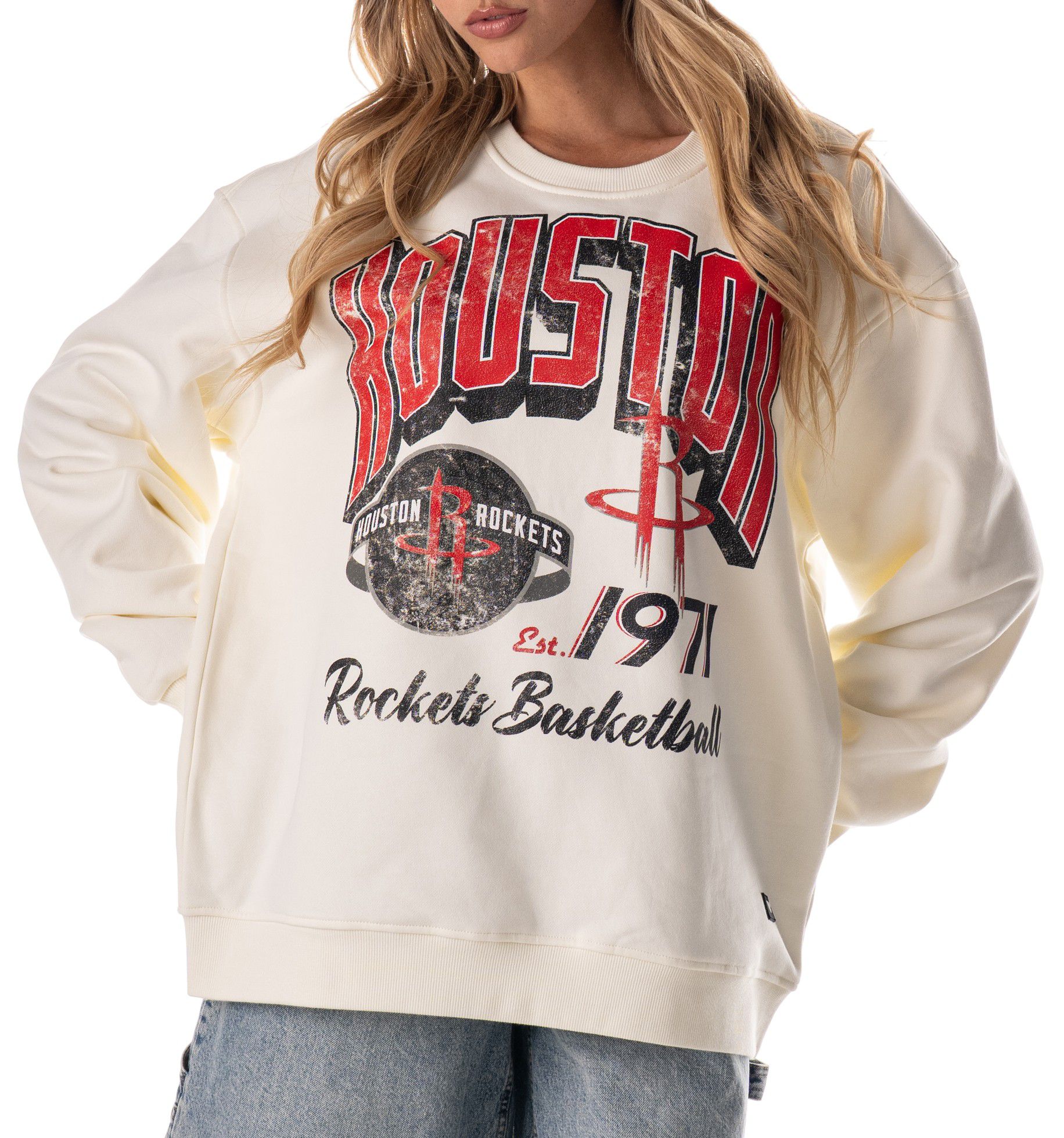 The Wild Collective Adult Houston Rockets Off-White Graphic Crewneck Sweatshirt