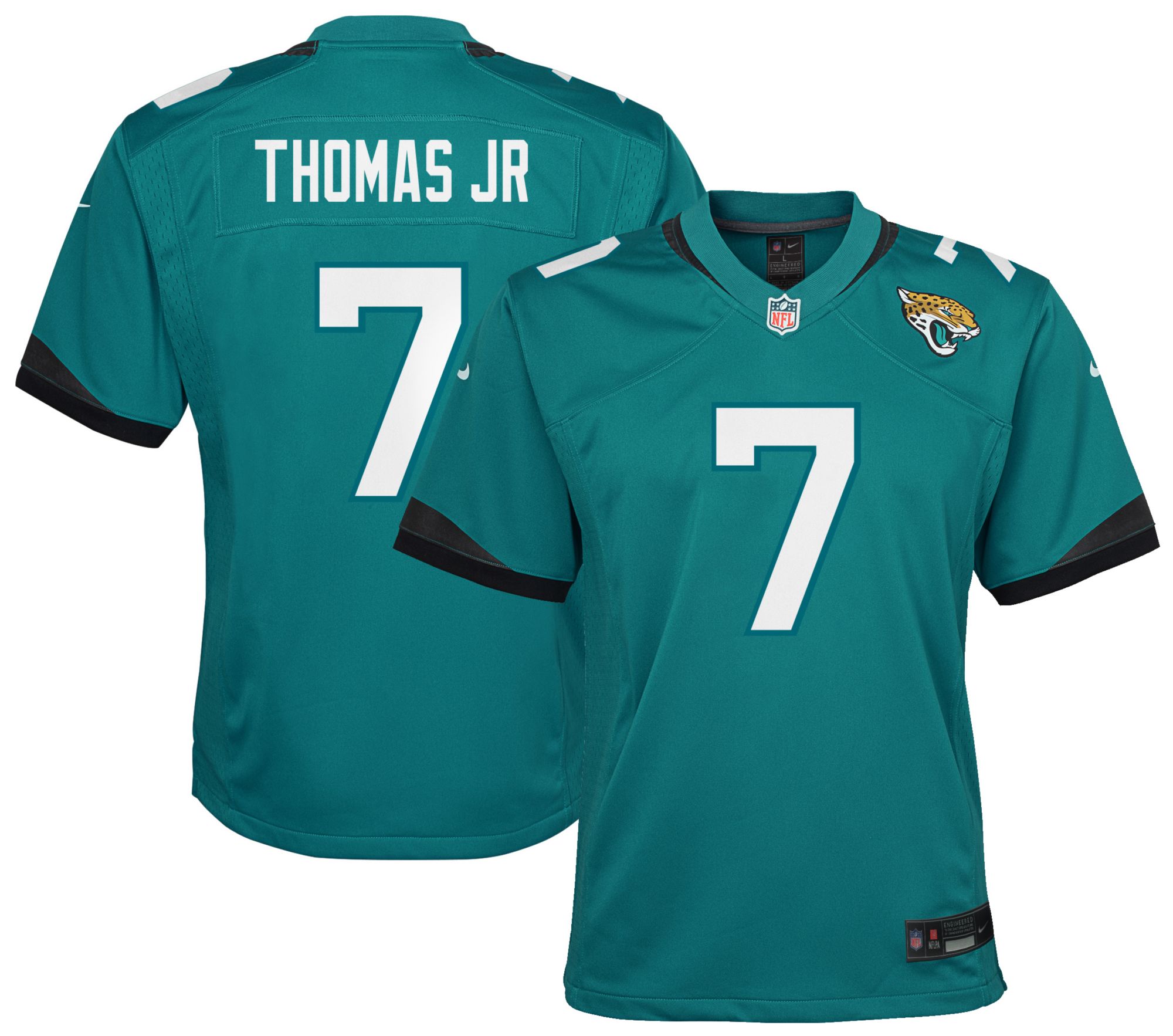Get the on-field look of your favorite player with a Jaguars jersey from DICK'S. Whether you're looking for iconic teal, road white or bold black, you'll find what you need here. Shop a great selection of officially licensed styles for men, women and kids. And, if you find a better price on a Jaguars jersey from another qualifying retailer, we'll match it with our Best Price Guarantee.