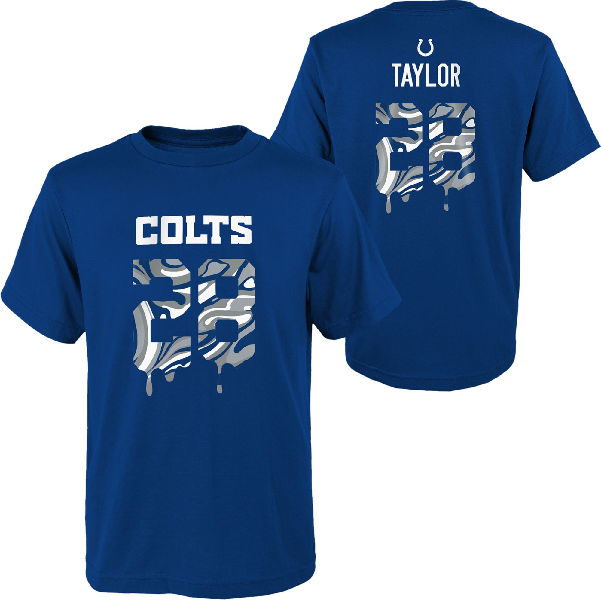 NFL Team Apparel Youth Indianapolis Colts Jonathan Taylor #28 Drip Blue T-Shirt
