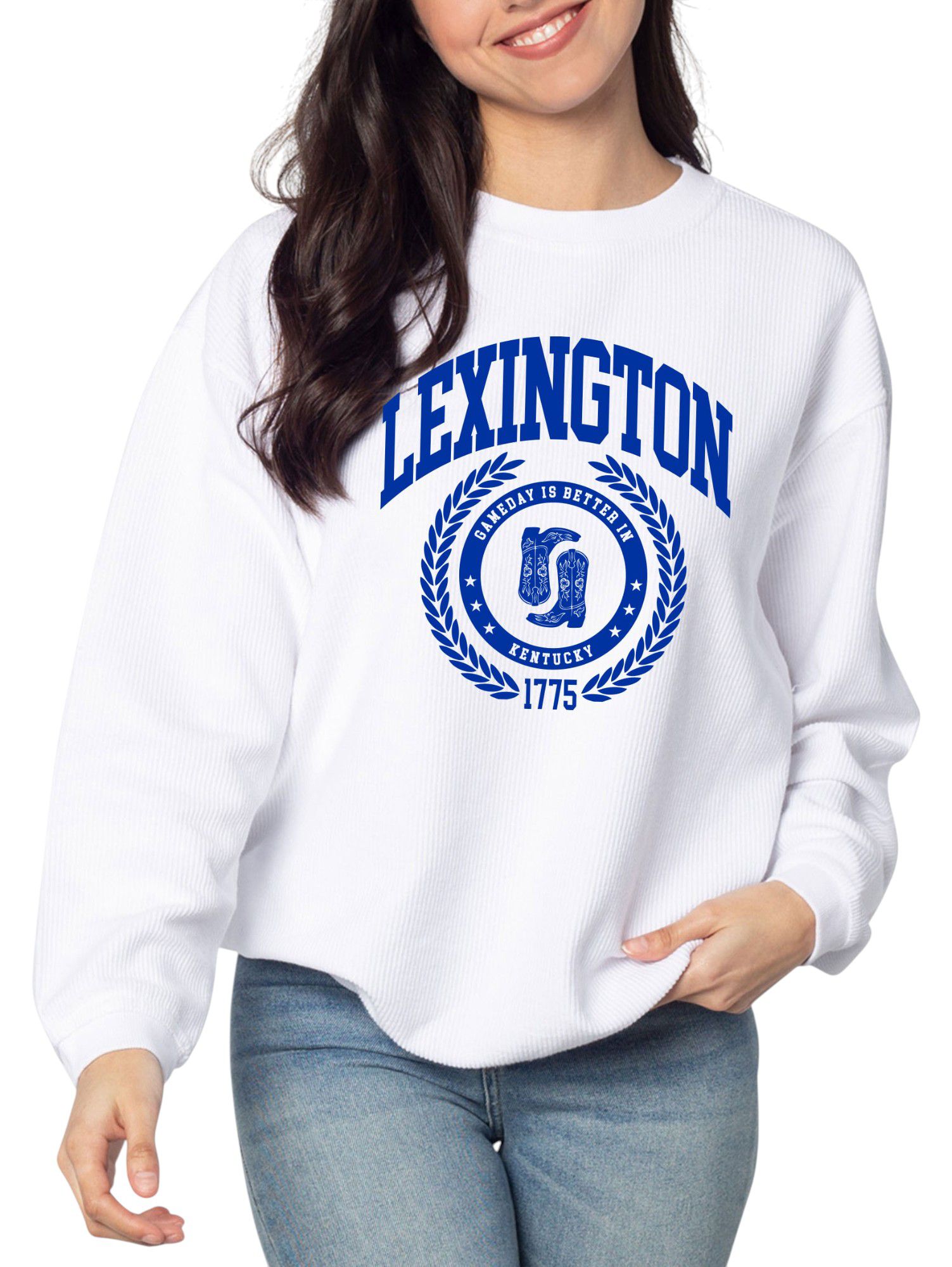chicka-d Women's Lexington White College Graphic Crew Pullover Sweatshirt