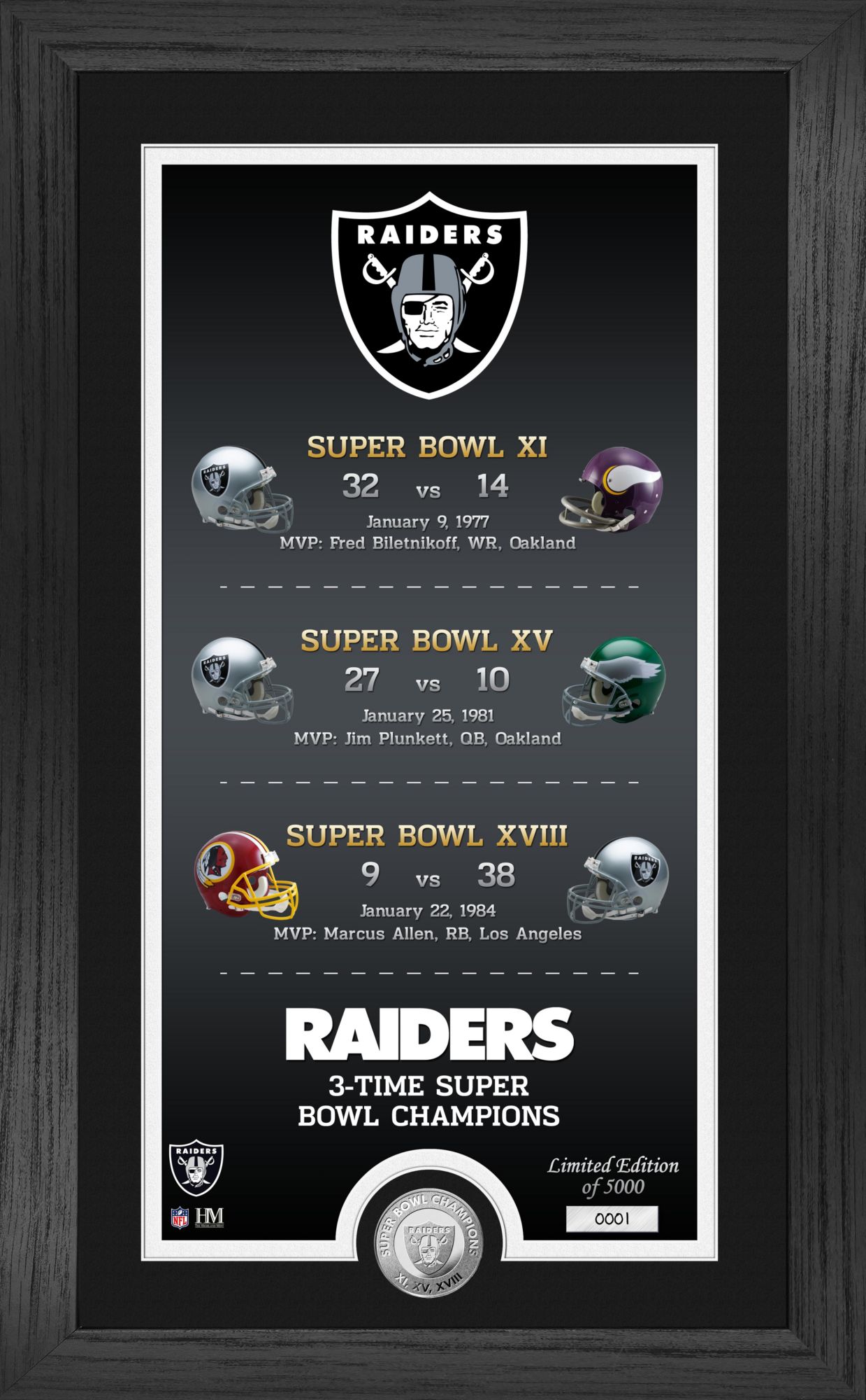 Highland Mint Las Vegas Raiders 3-Time Super Bowl Champions Ticket and Silver Coin Collection
