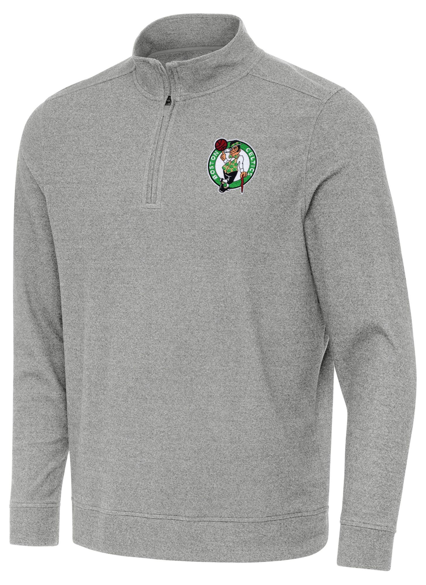 Antigua Men's Boston Celtics Grey Subtle Quarter-Zip Pullover