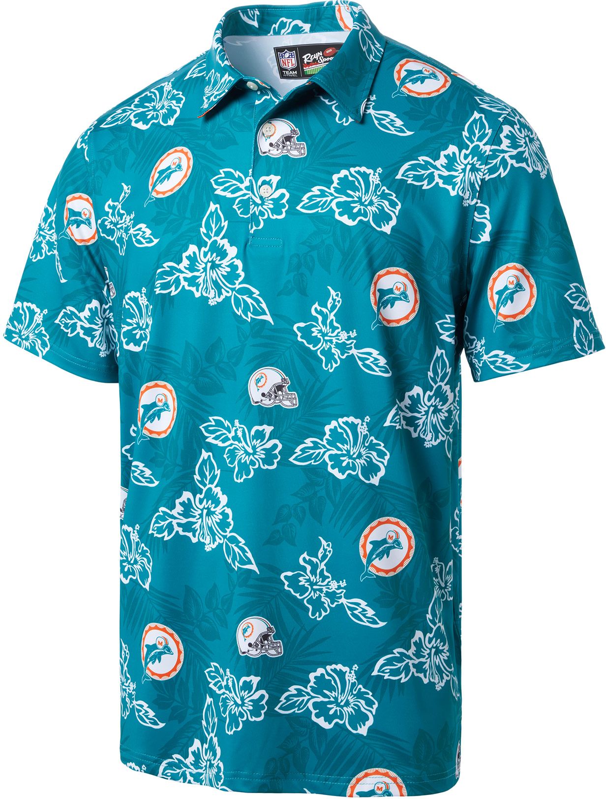 Reyn Spooner Men's Miami Dolphins Throwback Aqua Performance Polo