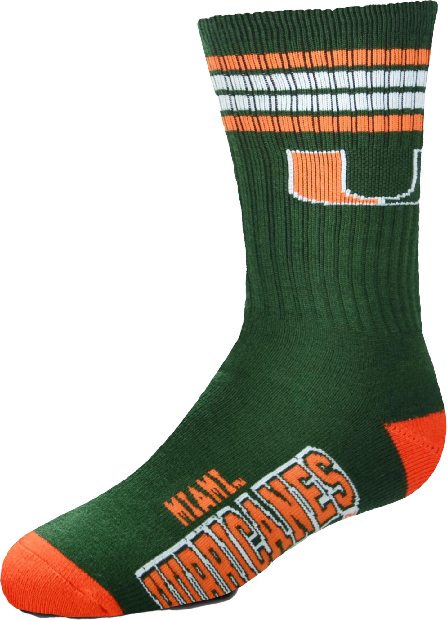 For Bare Feet Miami Hurricanes 4-Stripe Deuce Crew Socks