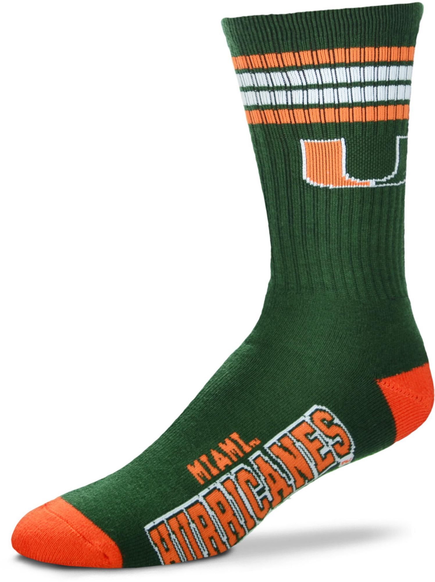 For Bare Feet Miami Hurricanes 4-Stripe Deuce Crew Socks