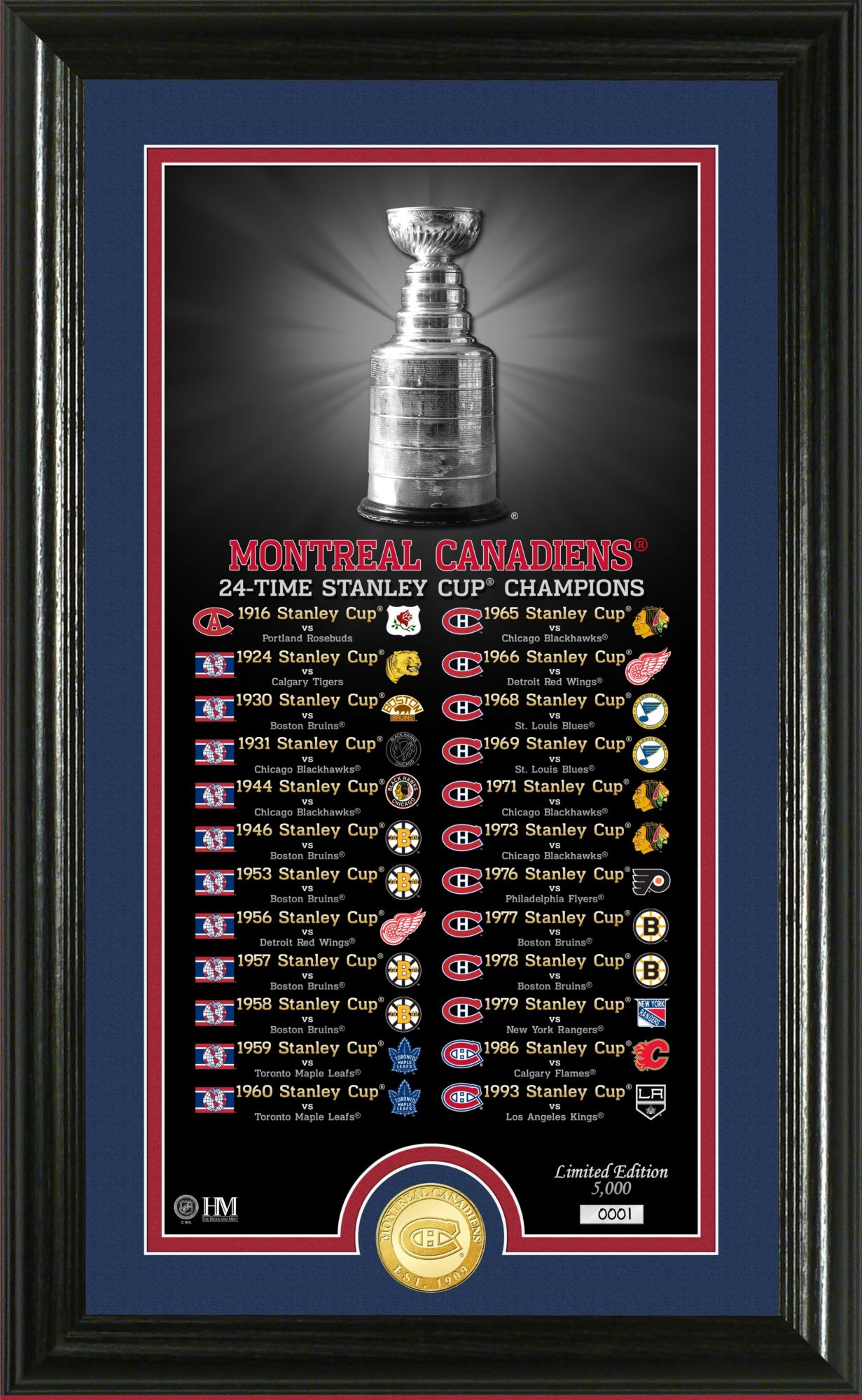 Highland Mint Montreal Canadiens Stanley Cup Banner Collection Photo Mint