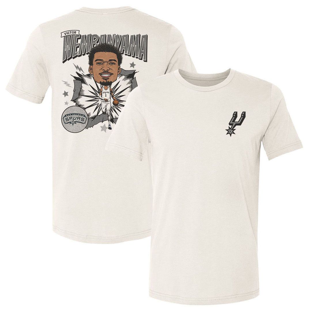 500 LEVEL Adult San Antonio Spurs Victor Wembanyama #1 Off-White Caricature T-Shirt