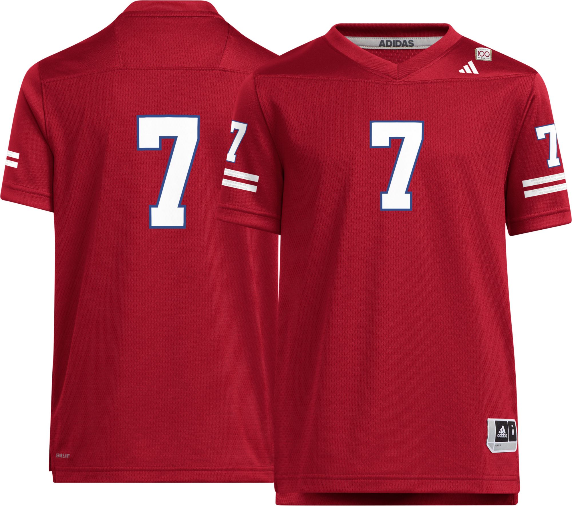 adidas Youth Nebraska Cornhuskers Scarlet Celebrating 100 Years Replica Football Jersey