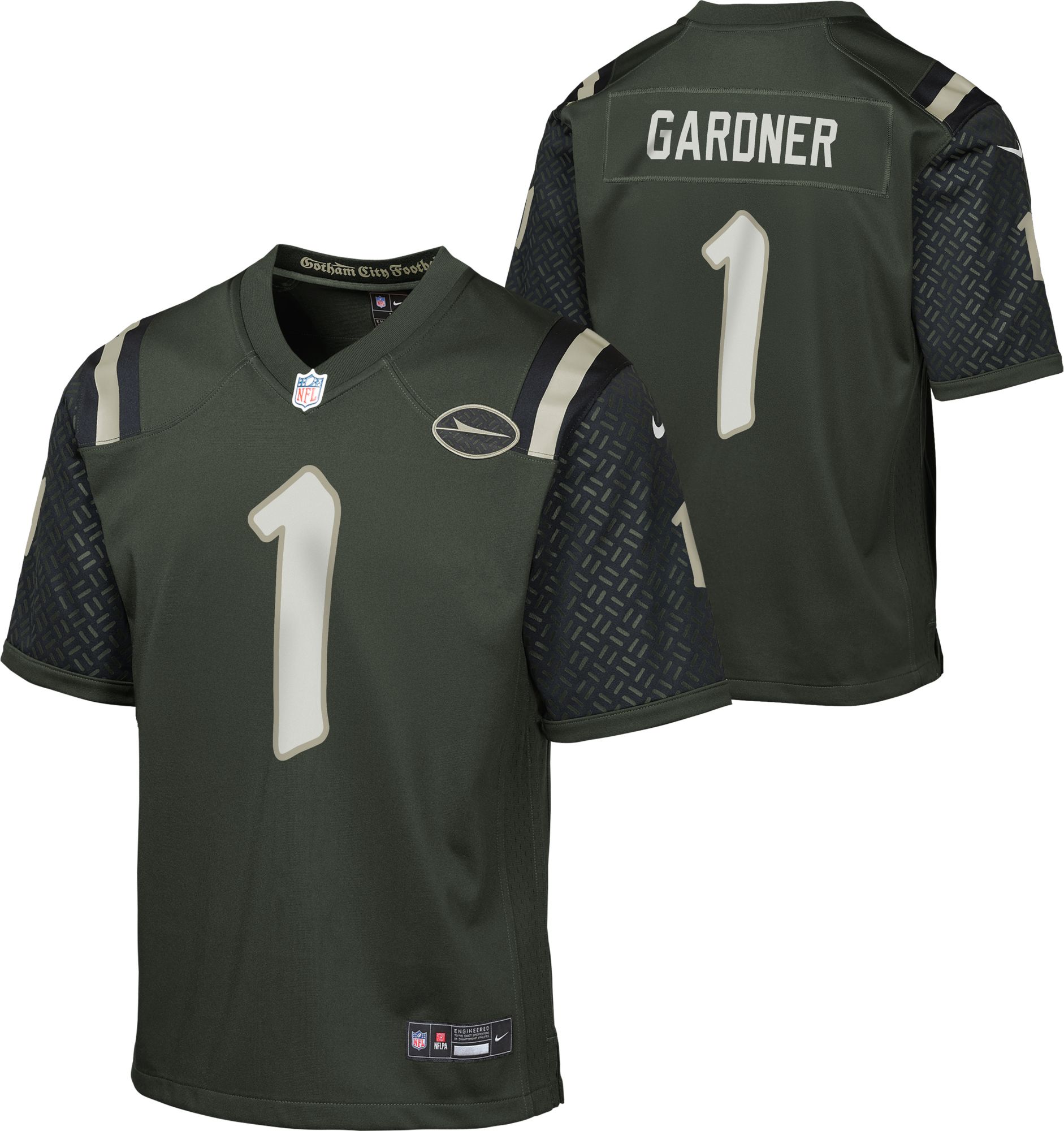 Gotham City Football: The New York Jets Rivalries Collection featuring a design inspired by iconic elements of NYC streets and the grit of Gotham.