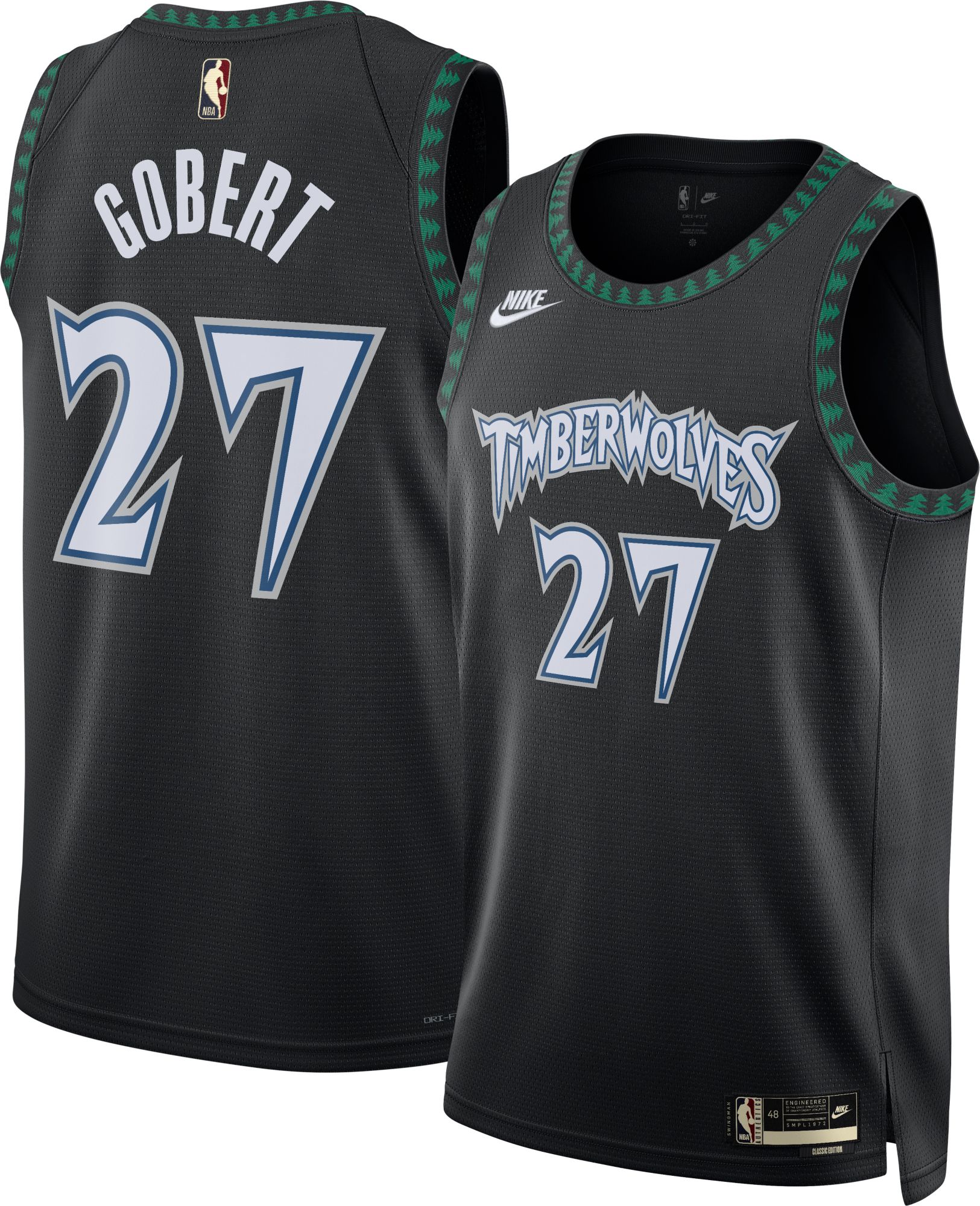 Nike Adult Minnesota Timberwolves Rudy Gobert #27 Black Hardwood Classics Swingman Jersey