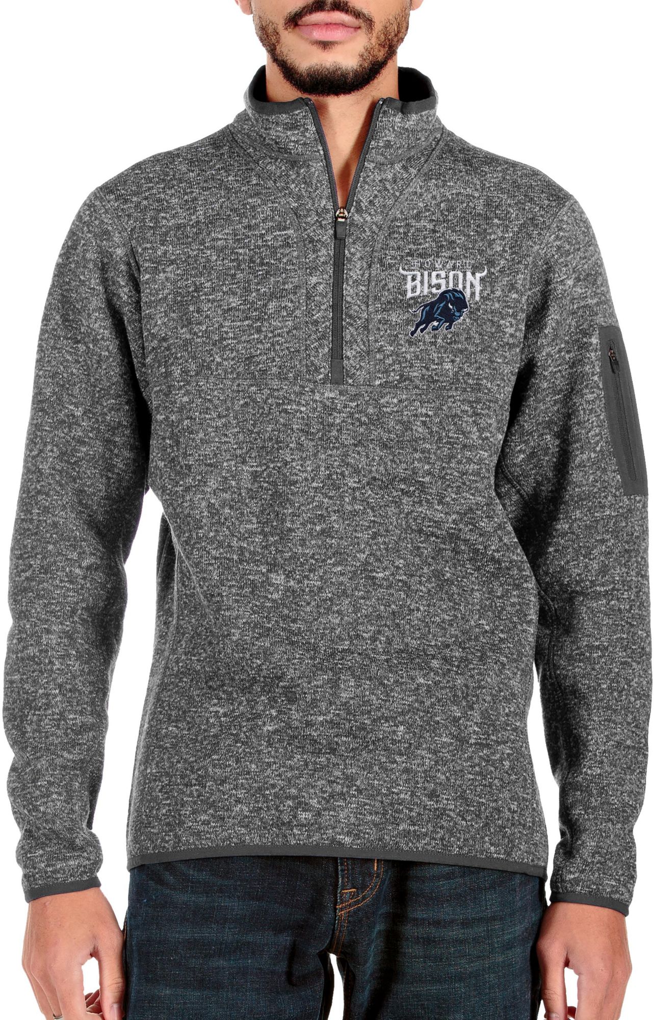 Antigua Men's Howard Bison Grey Fortune 1/4 Zip Pullover