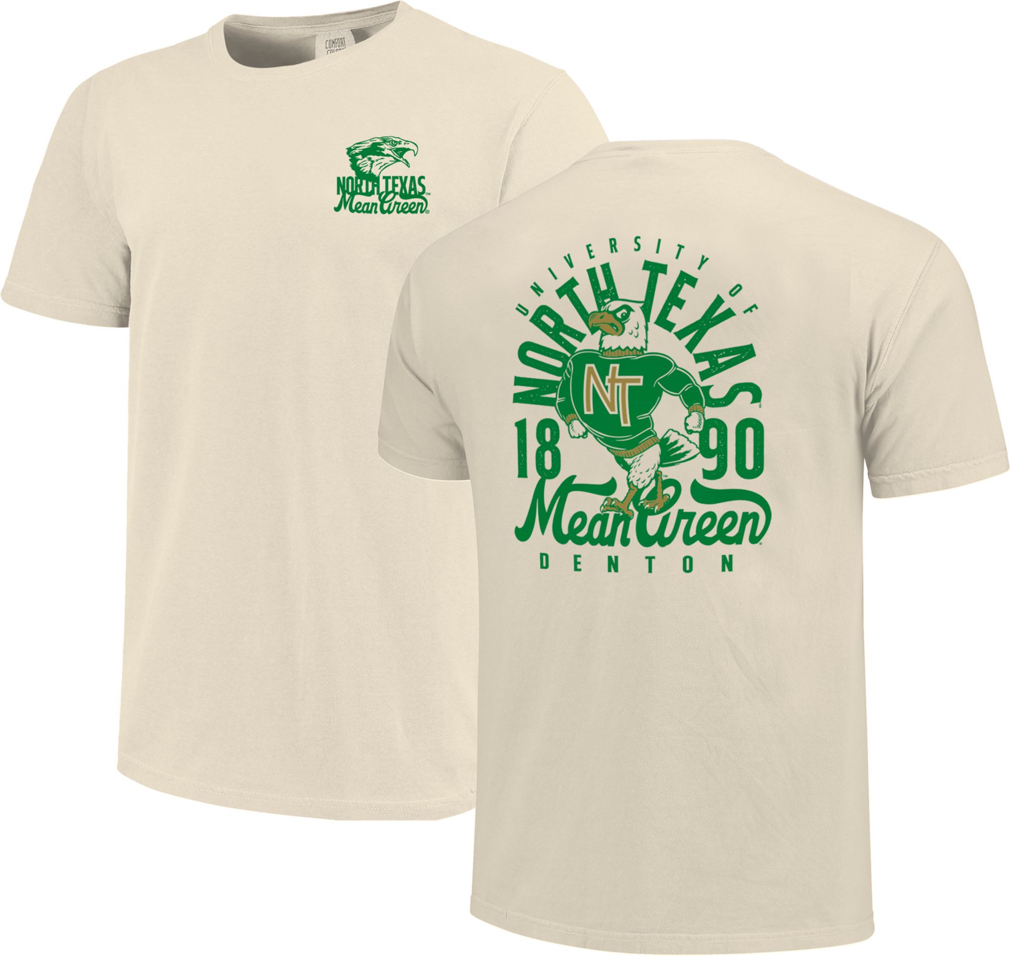 Image One Men's North Texas Mean Green Retro Mascot Ivory T-Shirt