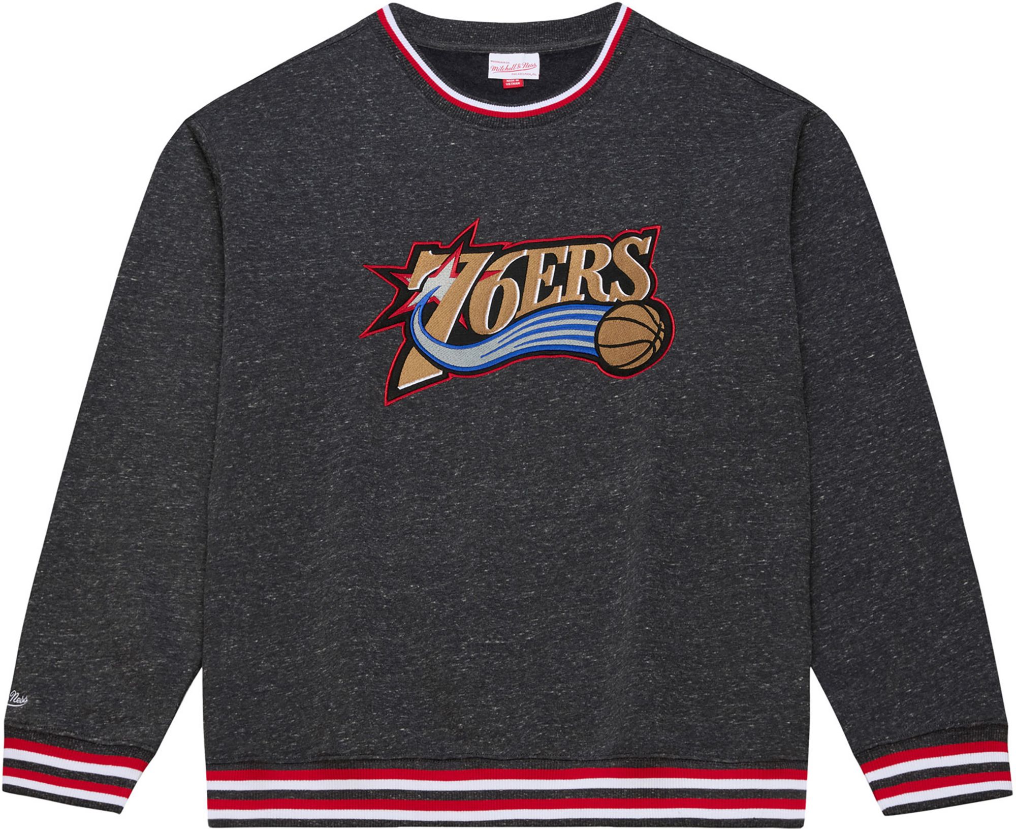 Mitchell & Ness Men's Philadelphia 76ers Black Retro Graphic Snow Washed Crewneck Sweatshirt