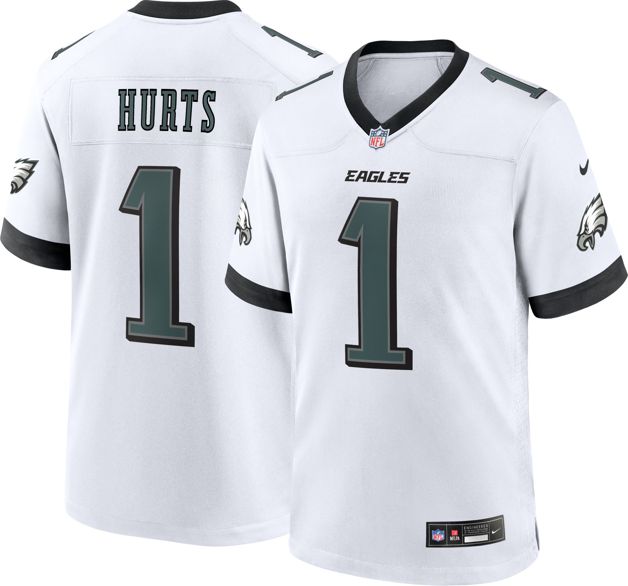 Put your Philly pride on full display with an officially licensed Eagles jersey from DICK'S. Whether you're looking for midnight green, road white or the Eagles' popular black jersey, you'll find what you need here. DICK'S carries a great selection of sizes for men, women and kids to ensure you get the perfect fit for game day. And, if you find a better price on an Eagles jersey from another qualifying retailer, we'll match it with our Best Price Guarantee.