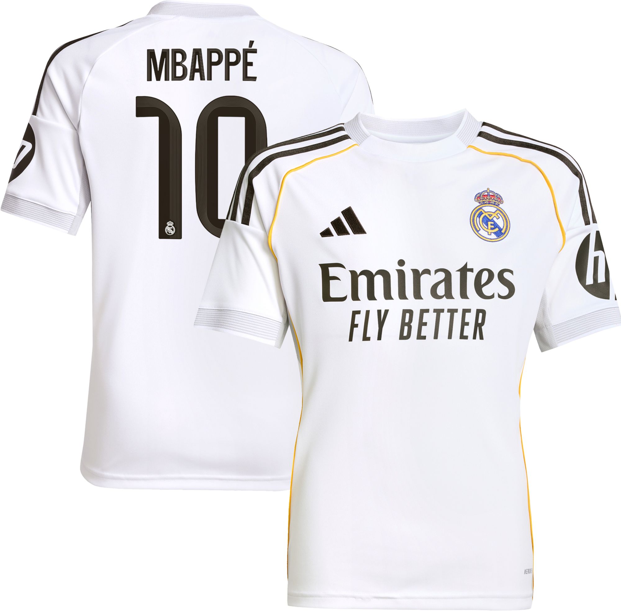 adidas Youth Real Madrid Kylian Mbappé #10 2025 Home Replica Jersey