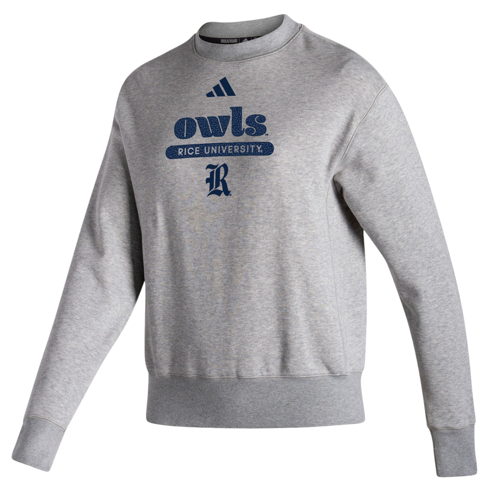 adidas Women's Rice Owls Grey Vintage Pullover Crew Sweatshirt