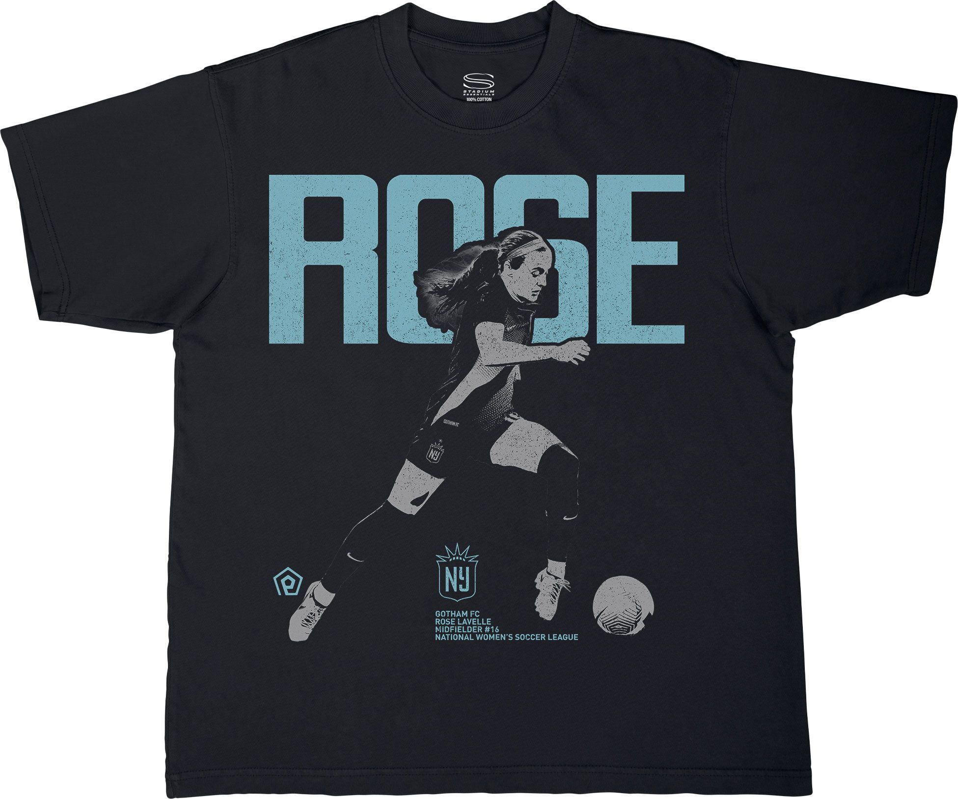 Stadium Essentials Adult NJ/NY Gotham FC Rose Lavelle #16 Black T-Shirt