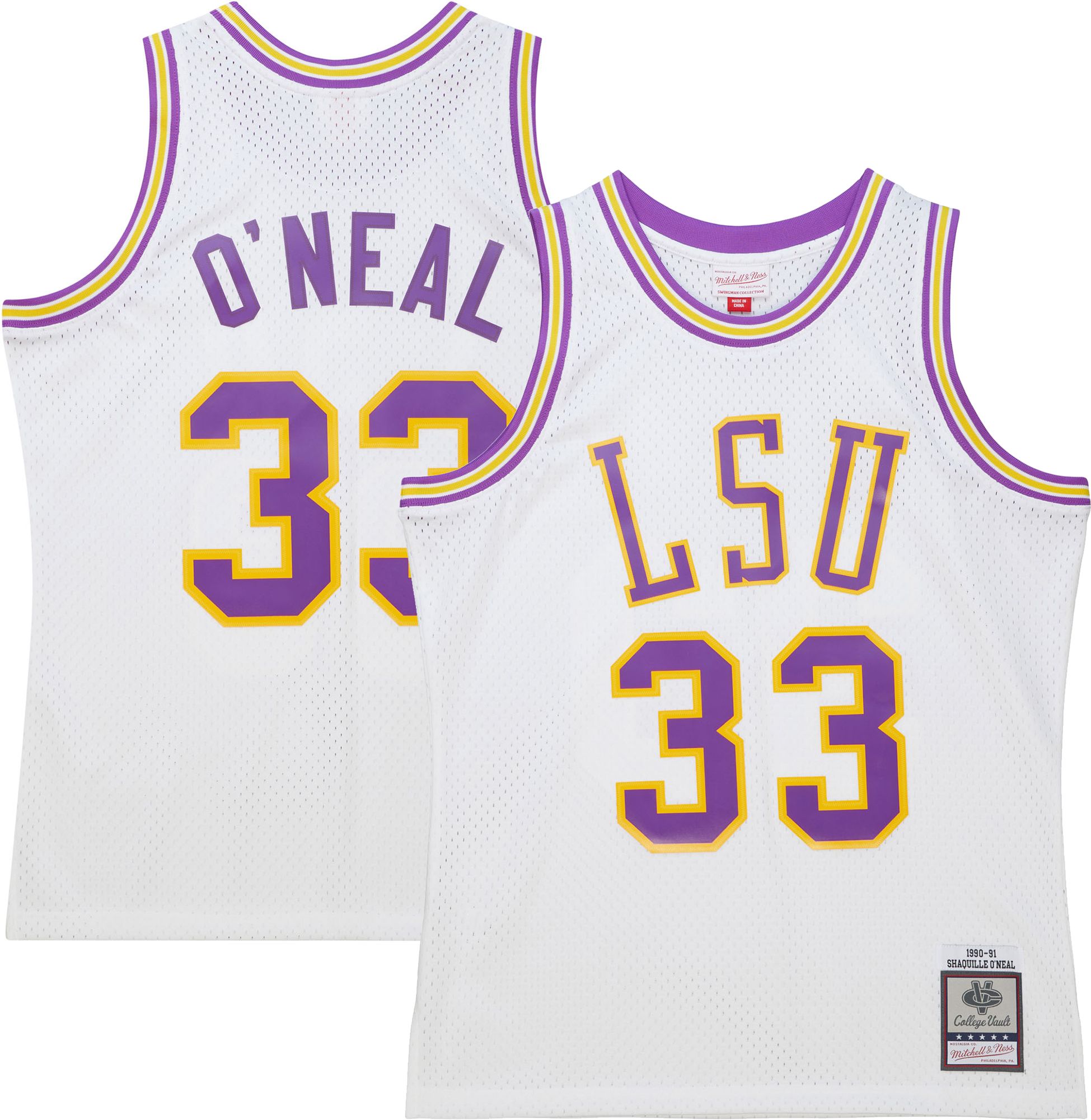 Mitchell & Ness Men's LSU Tigers White Shaquille O'Neal #33 Swingman Home Jersey