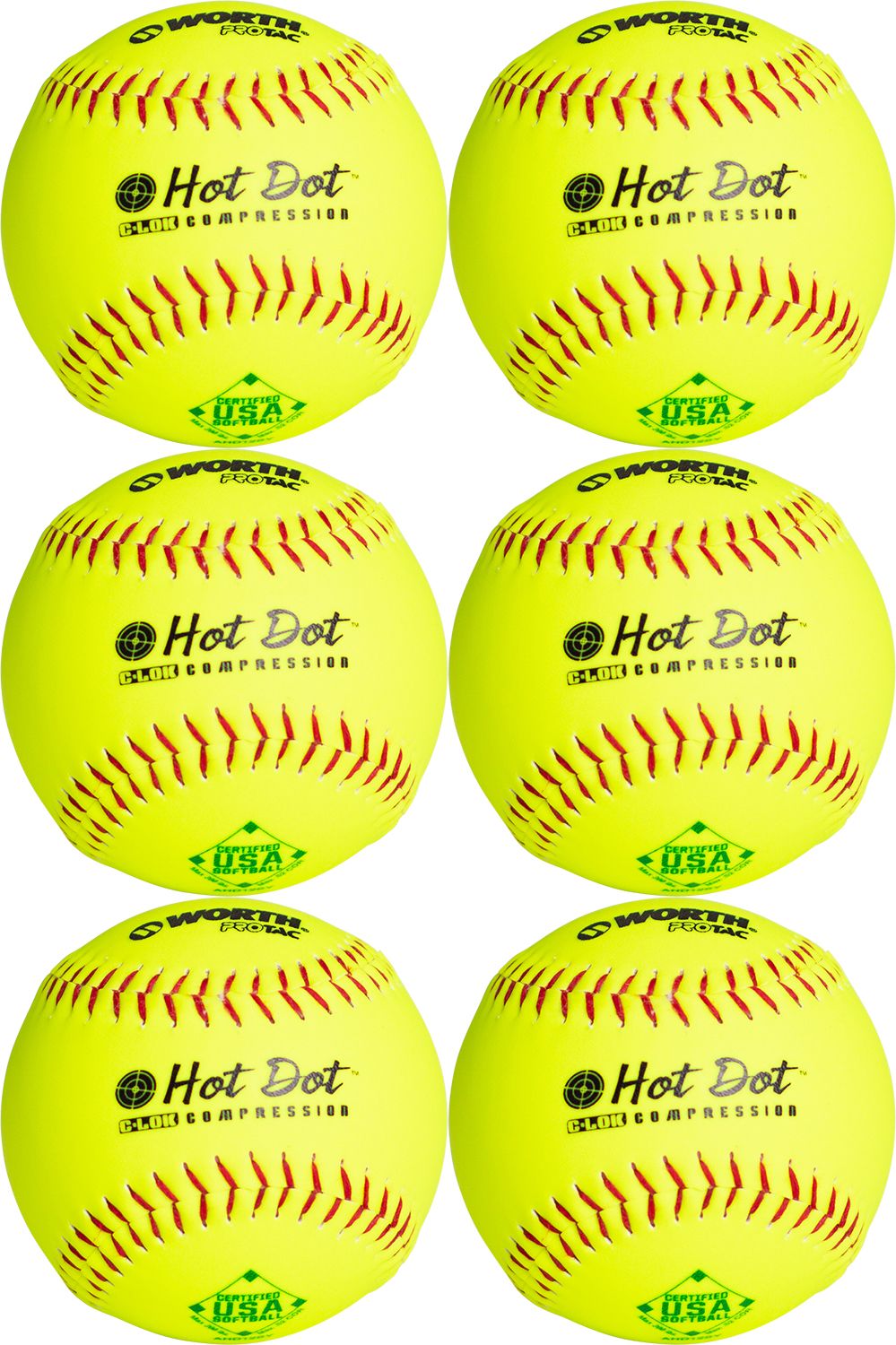 Worth 12" USA Hot Dot Slowpitch Softballs - 6 Pack