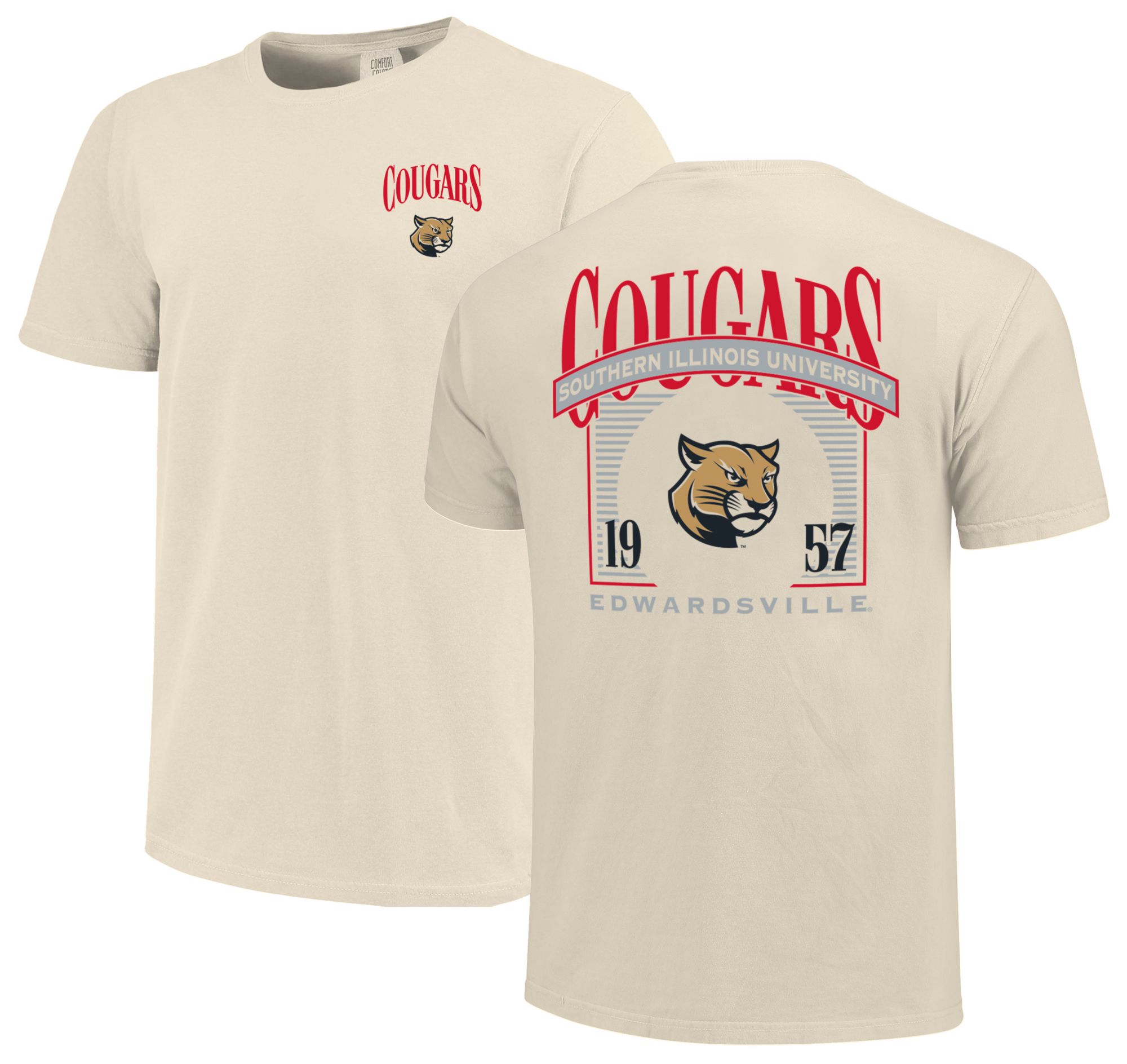 Image One Men's SIU Edwardsville Cougars White Banner Arch Poster T-Shirt