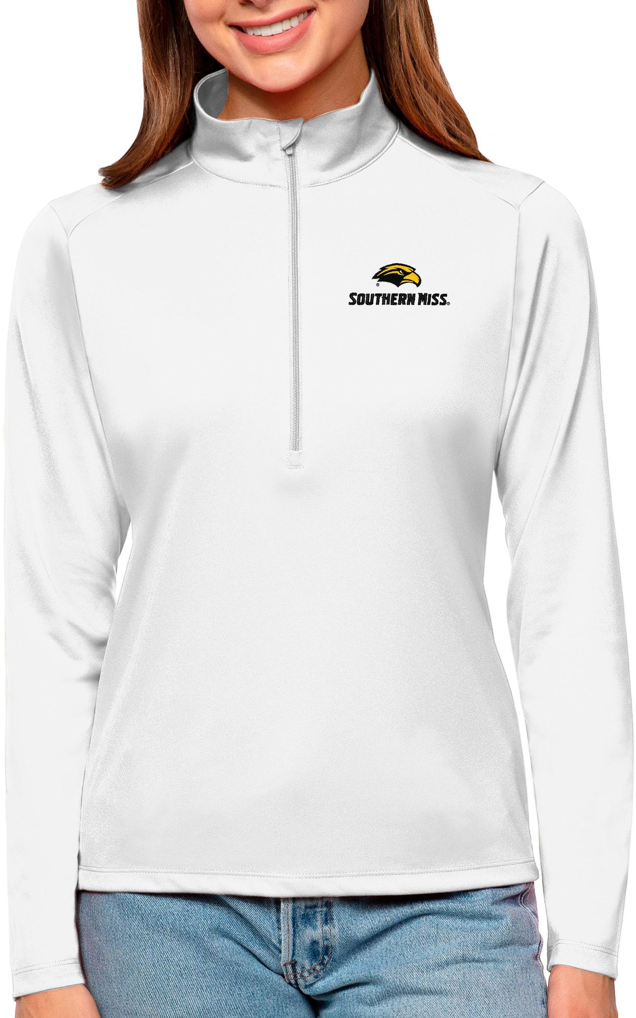 Antigua Women's Southern Miss Golden Eagles White Tribute Quarter-Zip Shirt