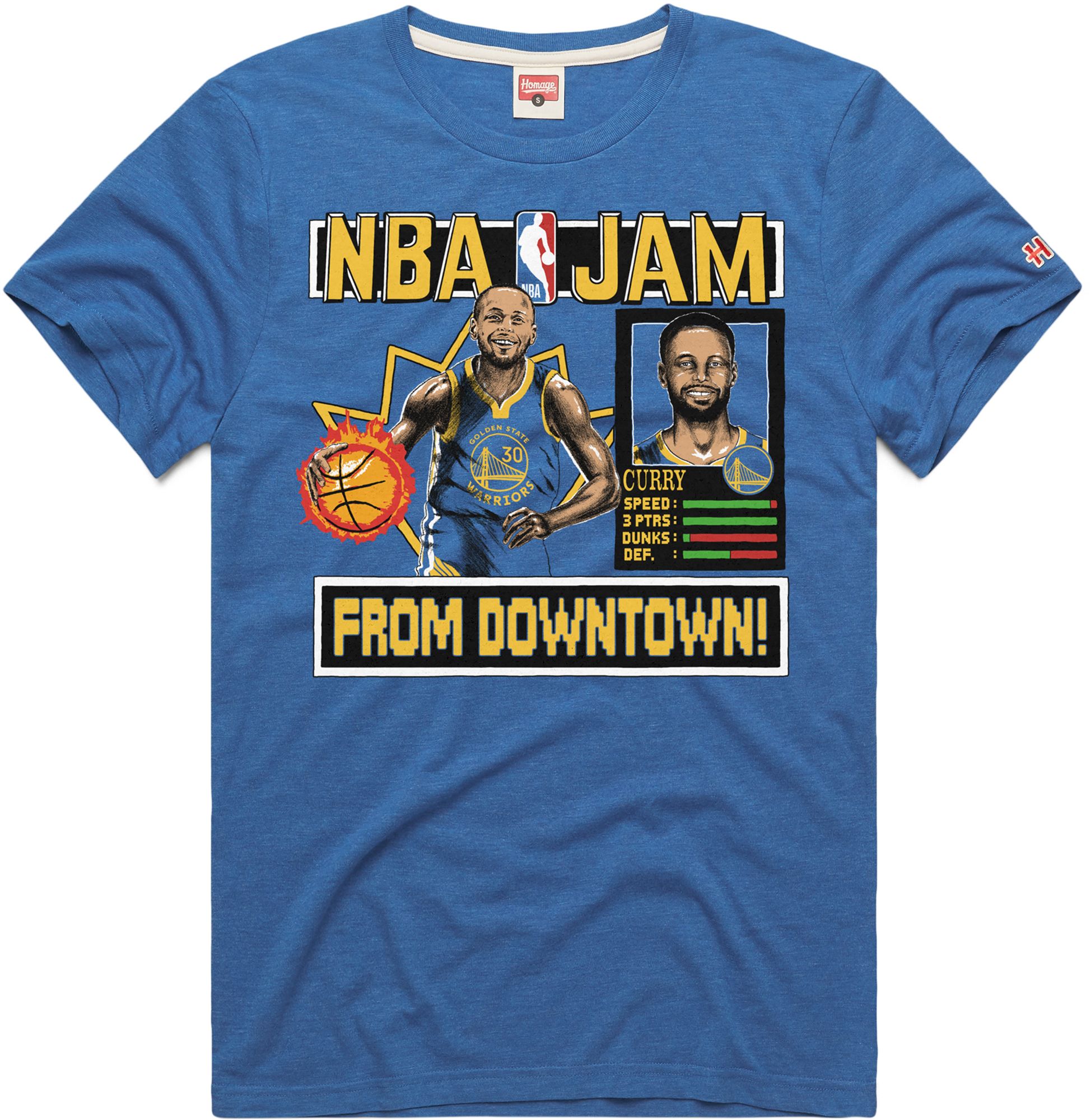 HOMAGE Men's Golden State Warriors Steph Curry Royal NBA Jam T-Shirt