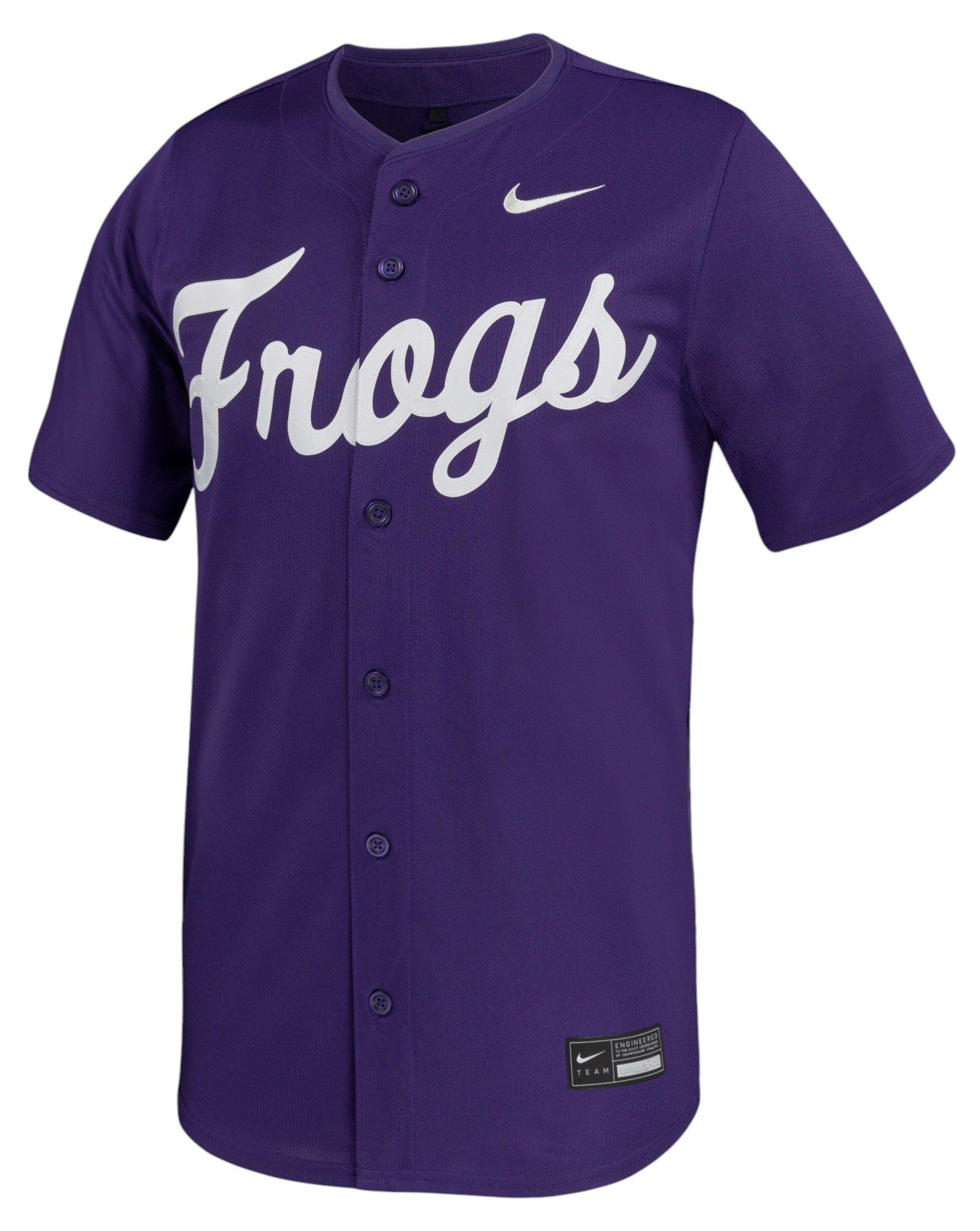 Nike Men's TCU Horned Frogs Purple Full Button Replica Baseball Jersey