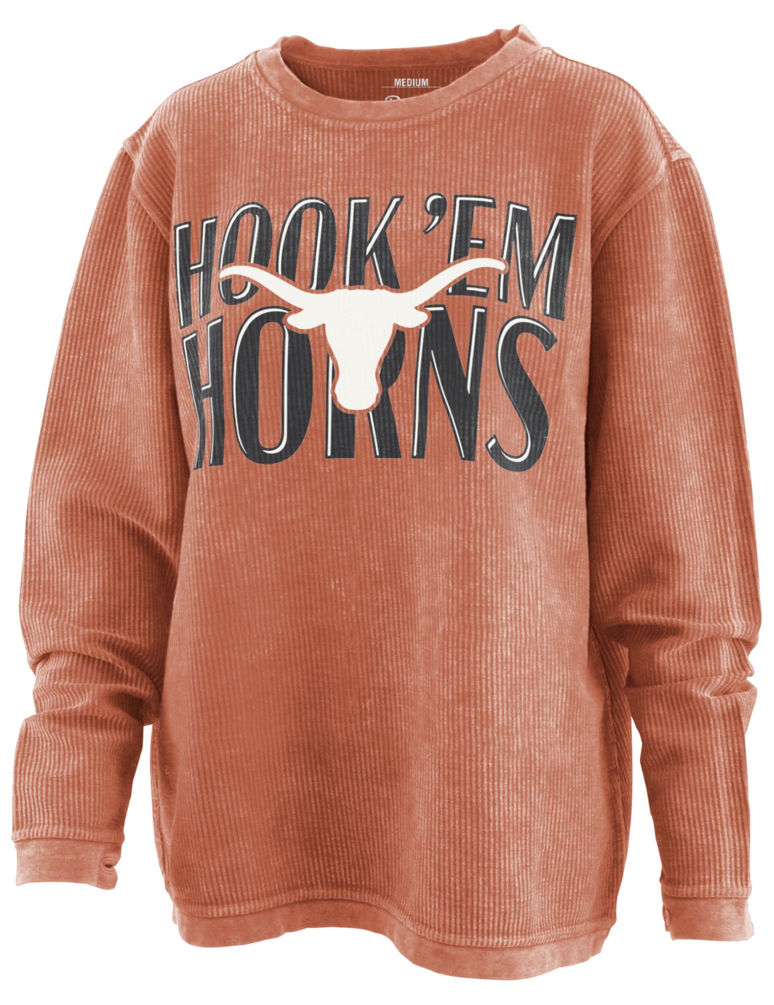 chicka-d Women's Texas Longhorns Burnt Orange Corded Crew Neck Sweatshirt