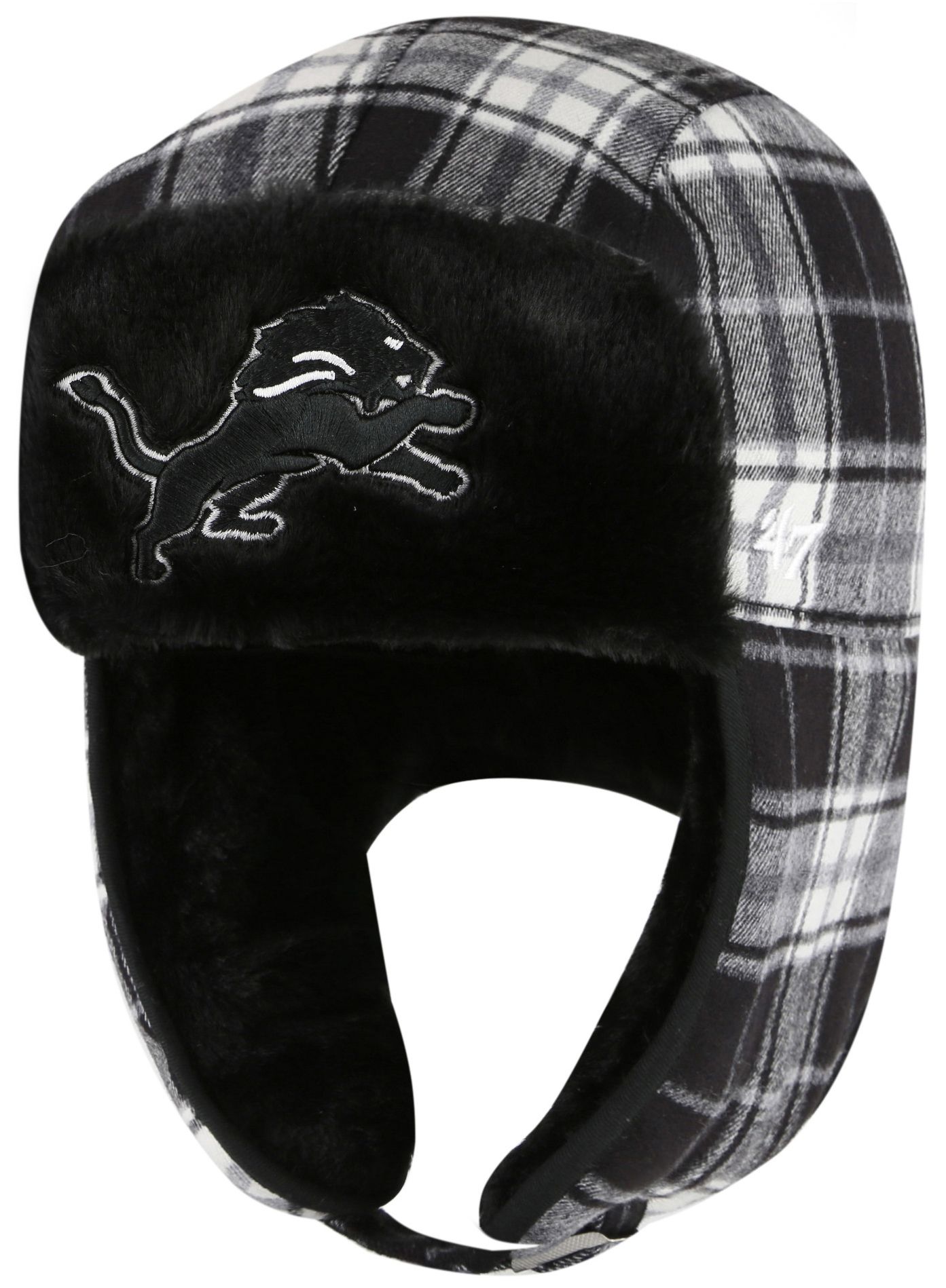 '47 Adult Detroit Lions Black Plaid Trapper Knit Hat