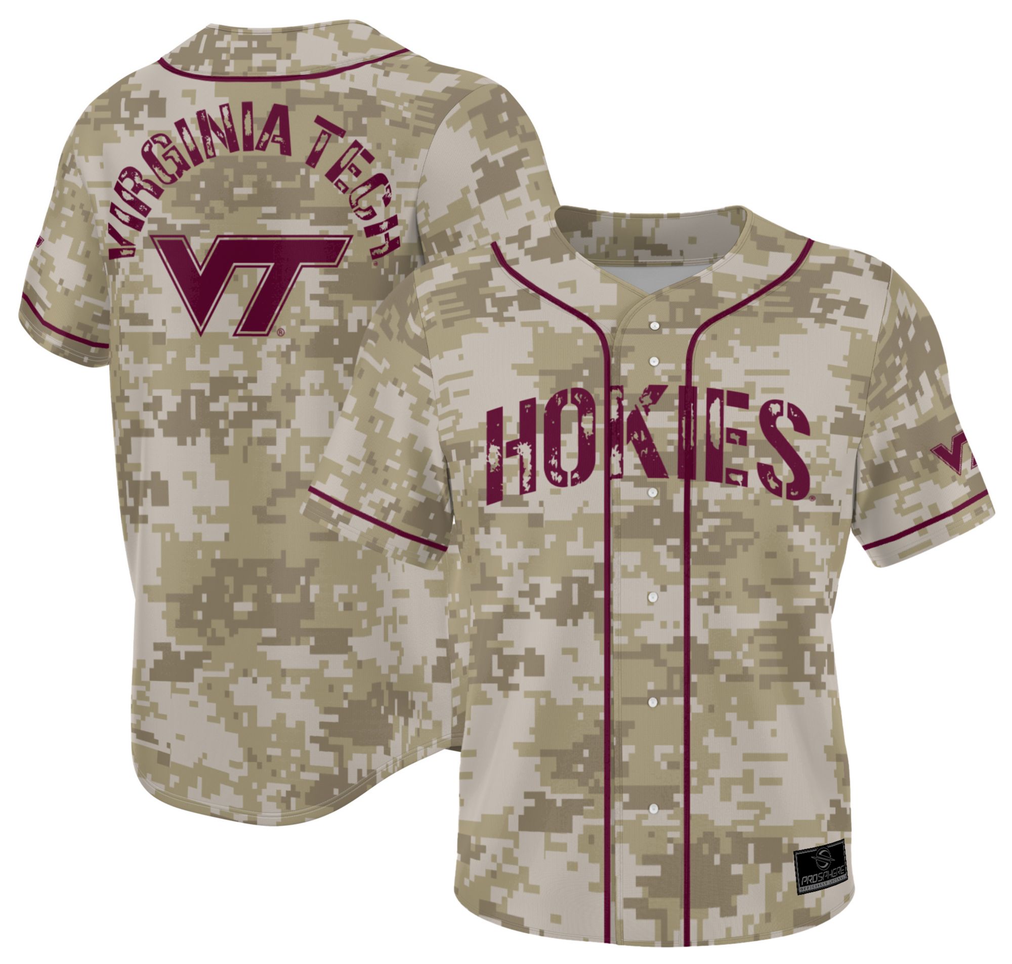 ProSphere Adult Virginia Tech Hokies Tan Digicamo Baseball Jersey