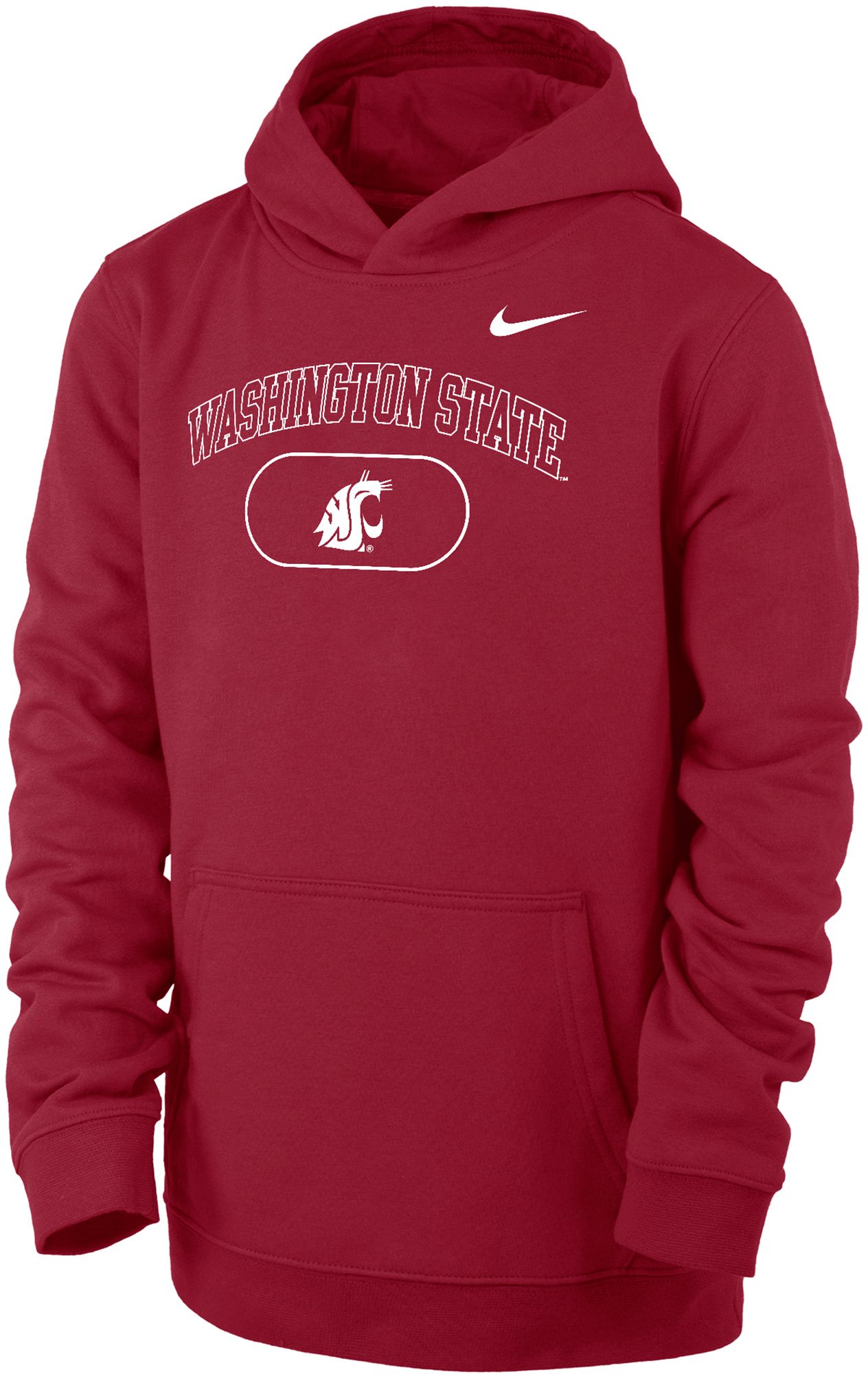 Nike Youth Washington State Cougars Crimson Club Fleece Pill Arch Wordmark Pullover Hoodie