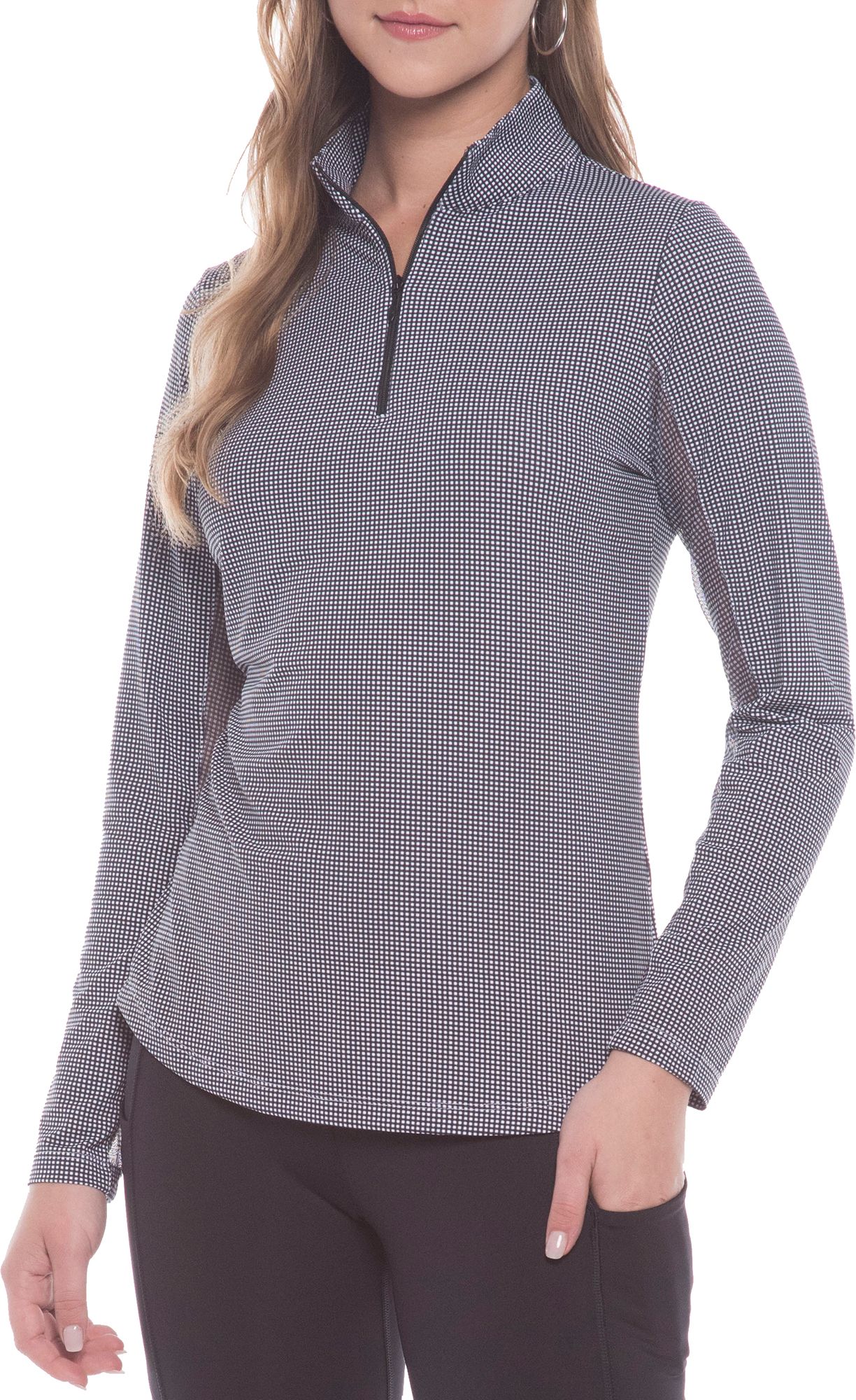 IBKUL Women's Ridley Print Long Sleeve Mock Neck Golf 1/4 Zip Shirt