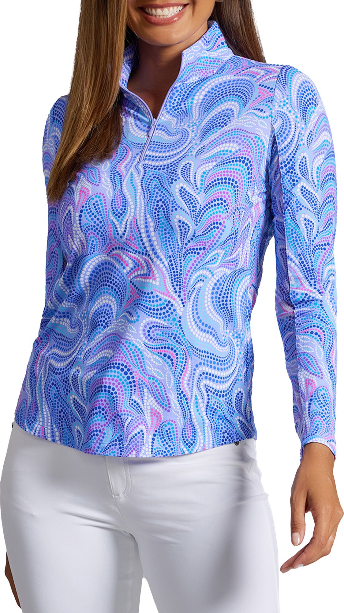 IBKUL Women's Nina Print Mock Neck ¼ Zip Long Sleeve Golf Shirt