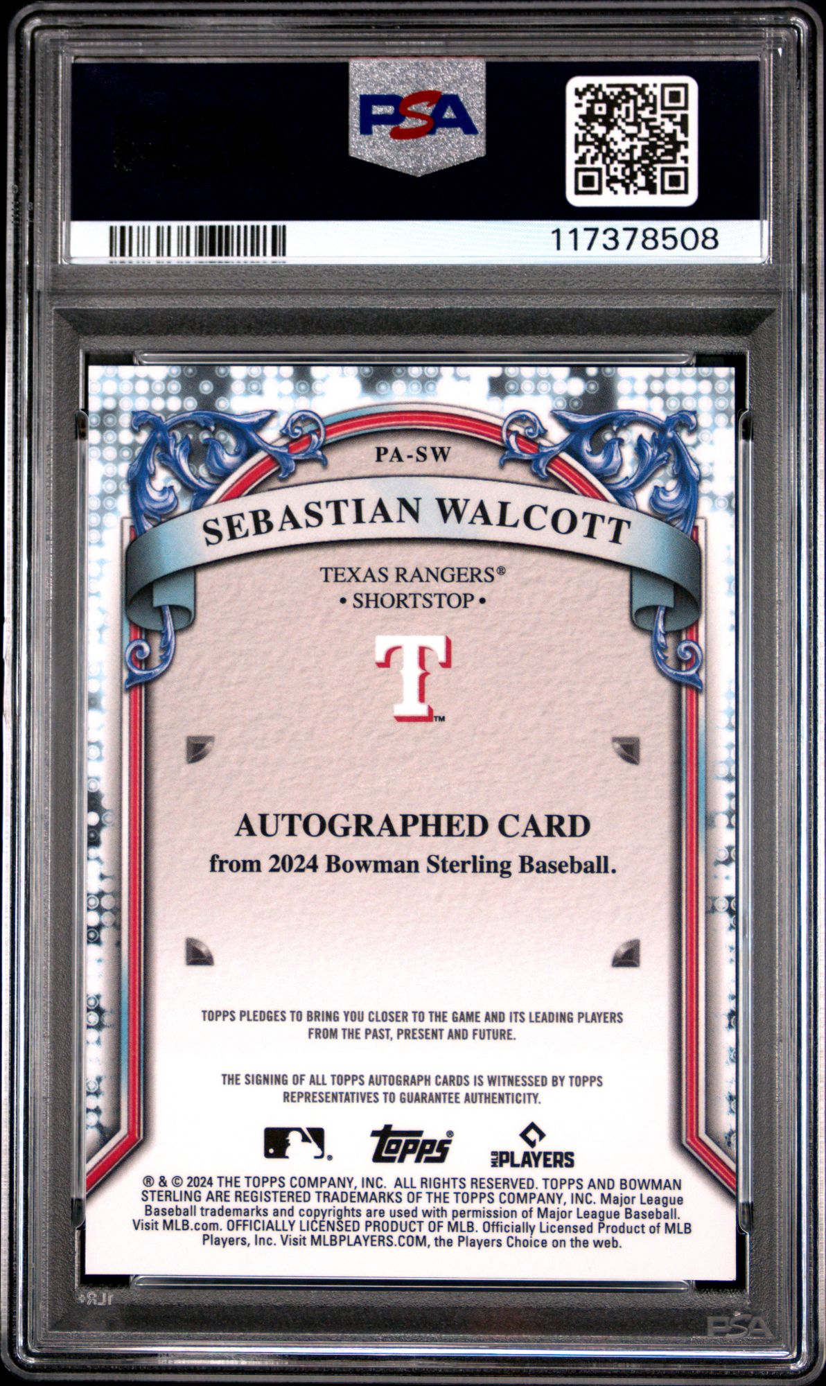 2024 Bowman Sterling Prospect Autographs Sebastian Walcott Purple Refractor PSA 10
