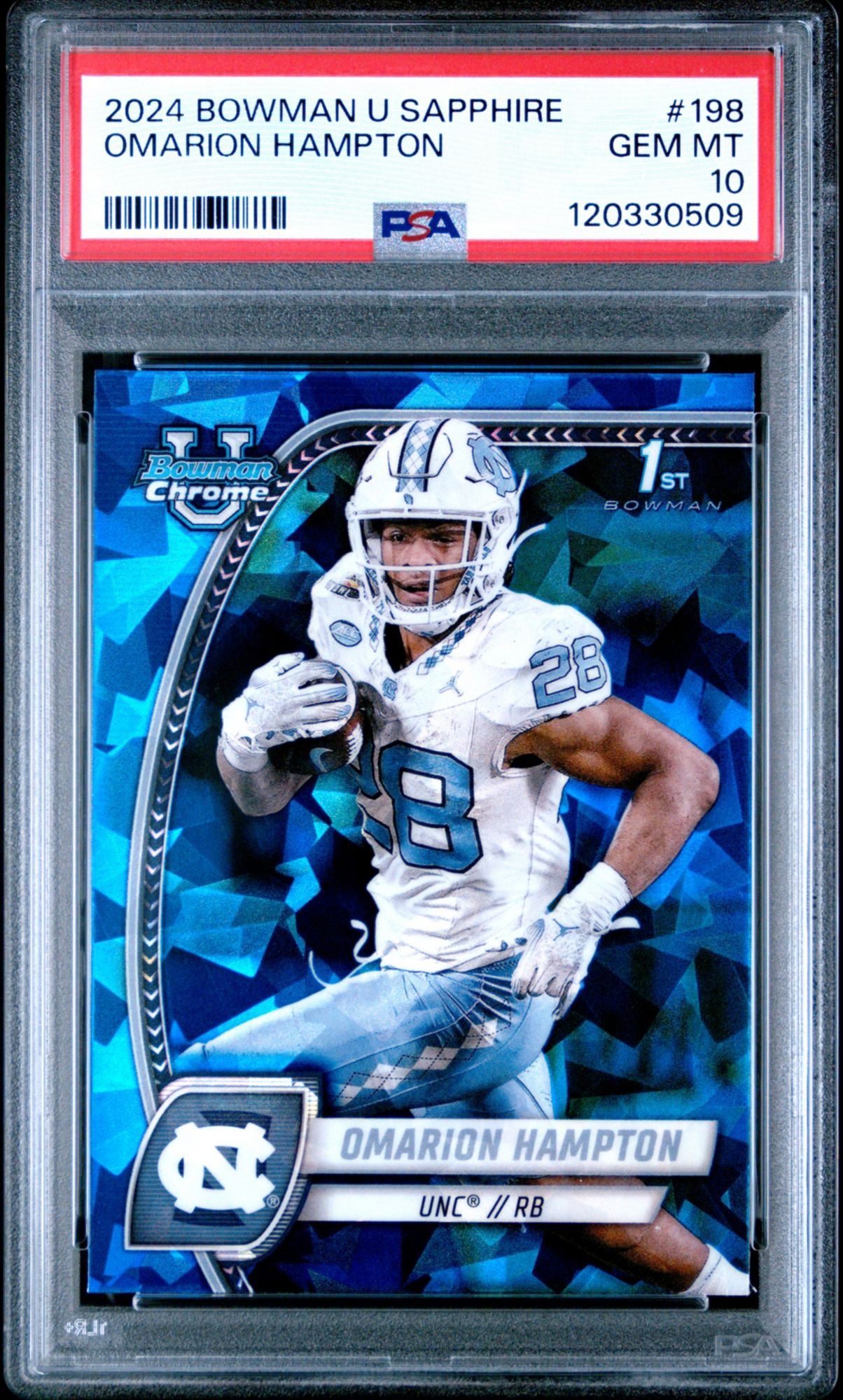 2024 Bowman University Chrome Sapphire 198 Omarion Hampton PSA 10
