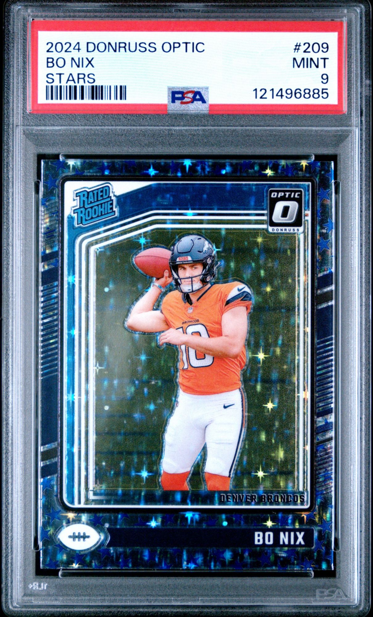 A PSA Mint 9 is a superb condition card that exhibits only one of the following minor flaws: a very slight wax stain on reverse, a minor printing imperfection or slightly off white borders. Centering must be approximately 60/40 or better on the front and 90/10 or better on the reverse